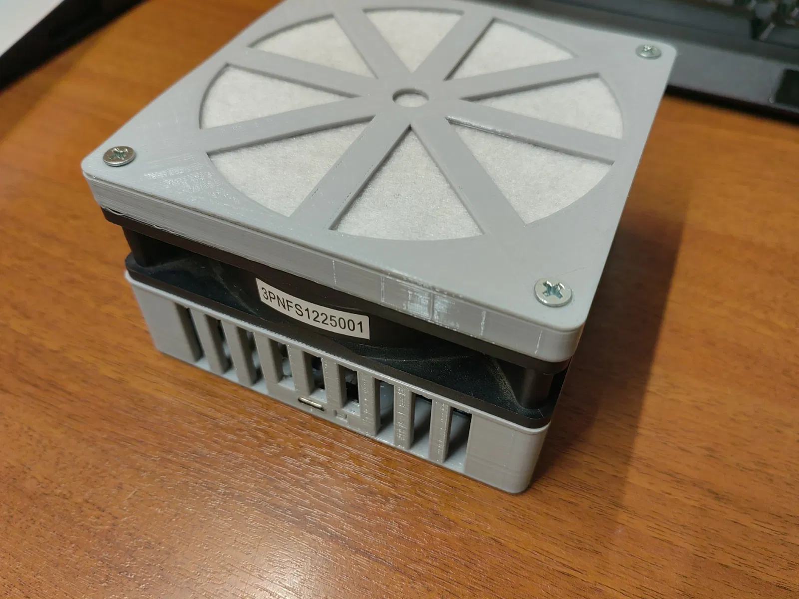 Trải nghiệm đầu tiên thiết kế bộ lọc không khí HEPA cho quạt 120mm. Quạt được cấp nguồn bằng cách nâng 5V lên 12V qua mạch DC-DC. Lắp ráp cần vít và ê-cu M4 dài 70mm. Tác giả đánh giá thử nghiệm chưa thành công.