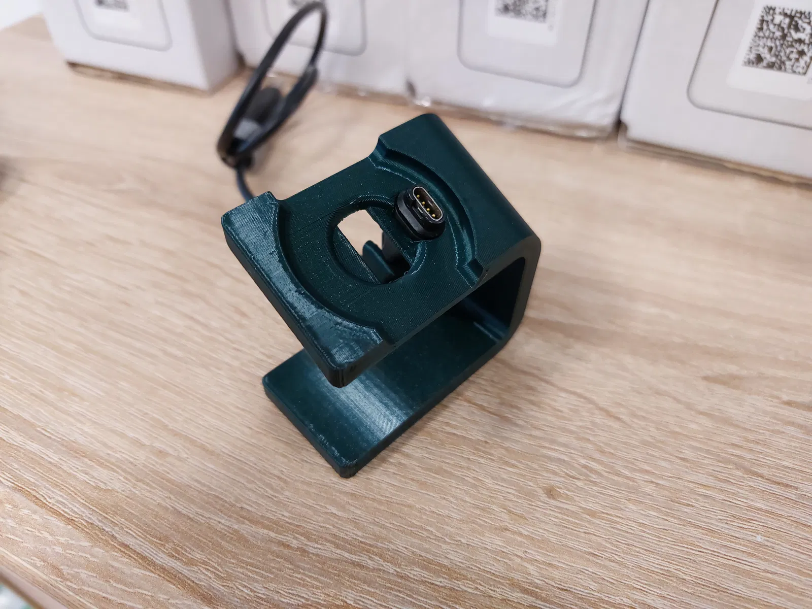 Bản remix đế sạc cho Garmin Vivoactive 4S (nhỏ hơn bản 4), chỉnh lại kích thước và vị trí lỗ đi dây để in được không cần supports. Có sẵn G-code 0,2mm và kèm file STEP/F3D để bạn chỉnh sửa.