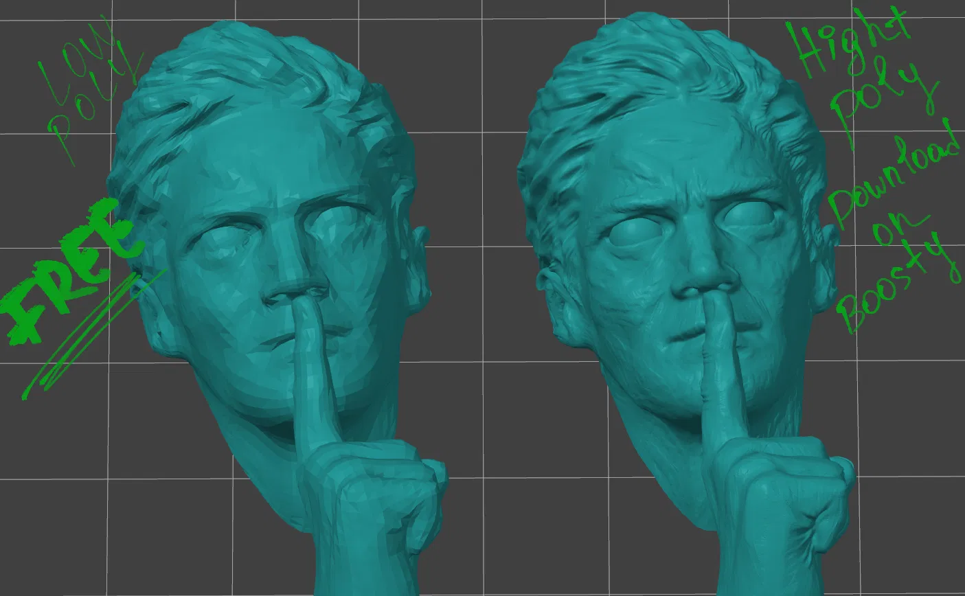 Mẫu 3D IL Segreto dựa theo tác phẩm điêu khắc EL Secreto của Matteo Pugliese. File đi kèm là bản low-poly; bạn có thể tải phiên bản chất lượng tốt hơn từ VinogradoVision qua Boosty.