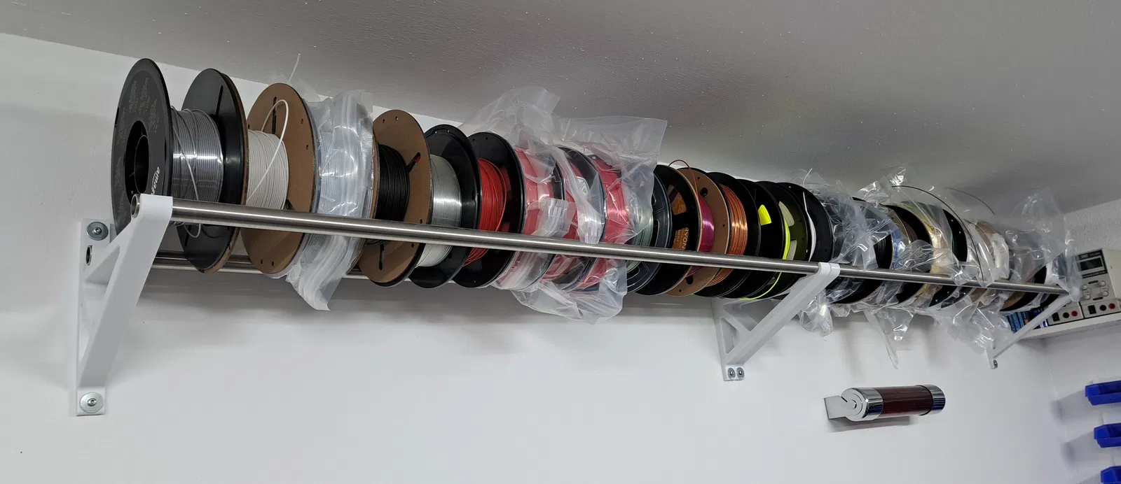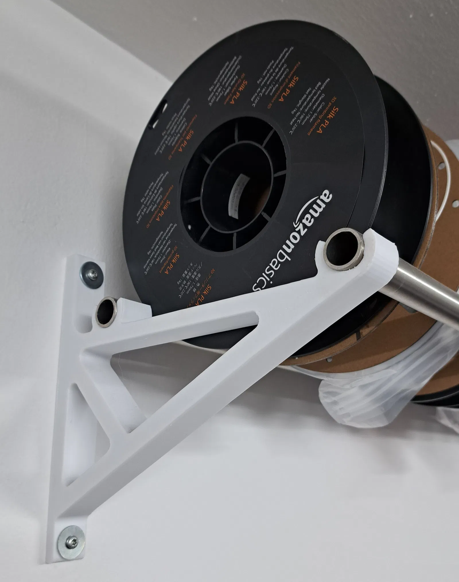 Mẫu giá đỡ spool (cuộn filament) được thiết kế gia cố để tăng độ cứng vững. Bản gốc sau một thời gian sử dụng bị biến dạng, nên phiên bản này được reinforcement để bền hơn.
