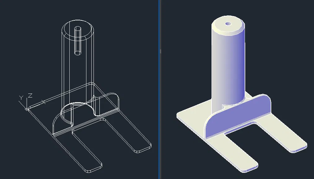 Trước giờ mình dùng tạm một cái tripod dư đặt phía trước bên trái bed và thấy góc đó khá ổn, nhưng nó cồng kềnh và cao quá, nên mình tự thiết kế cái trụ mount này bằng AutoCAD. Mình không dùng AutoCAD cho thiết kế cơ khí (mình là kỹ sư điện), nên loay hoay vụ làm ren (integral threads) mãi không xong, cuối cùng bỏ cuộc và chuyển sang dùng ta-rô (tap).