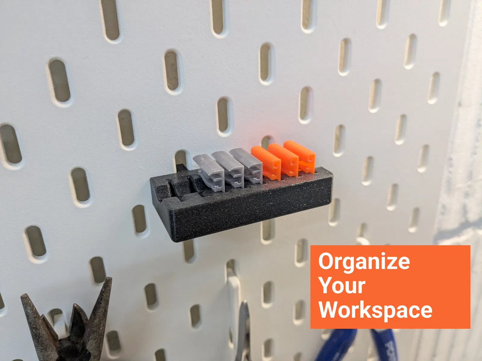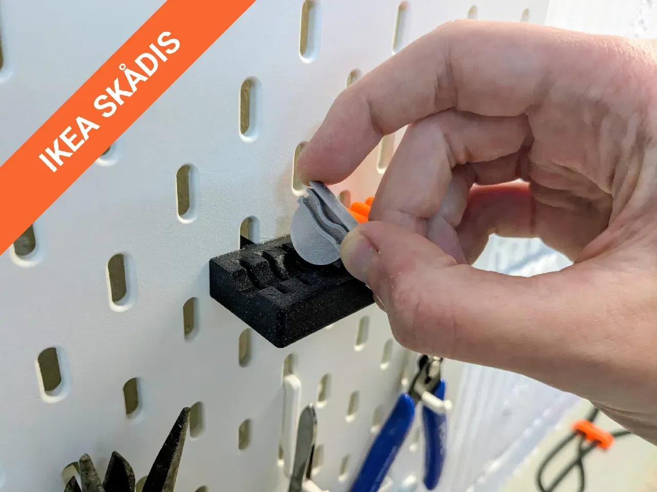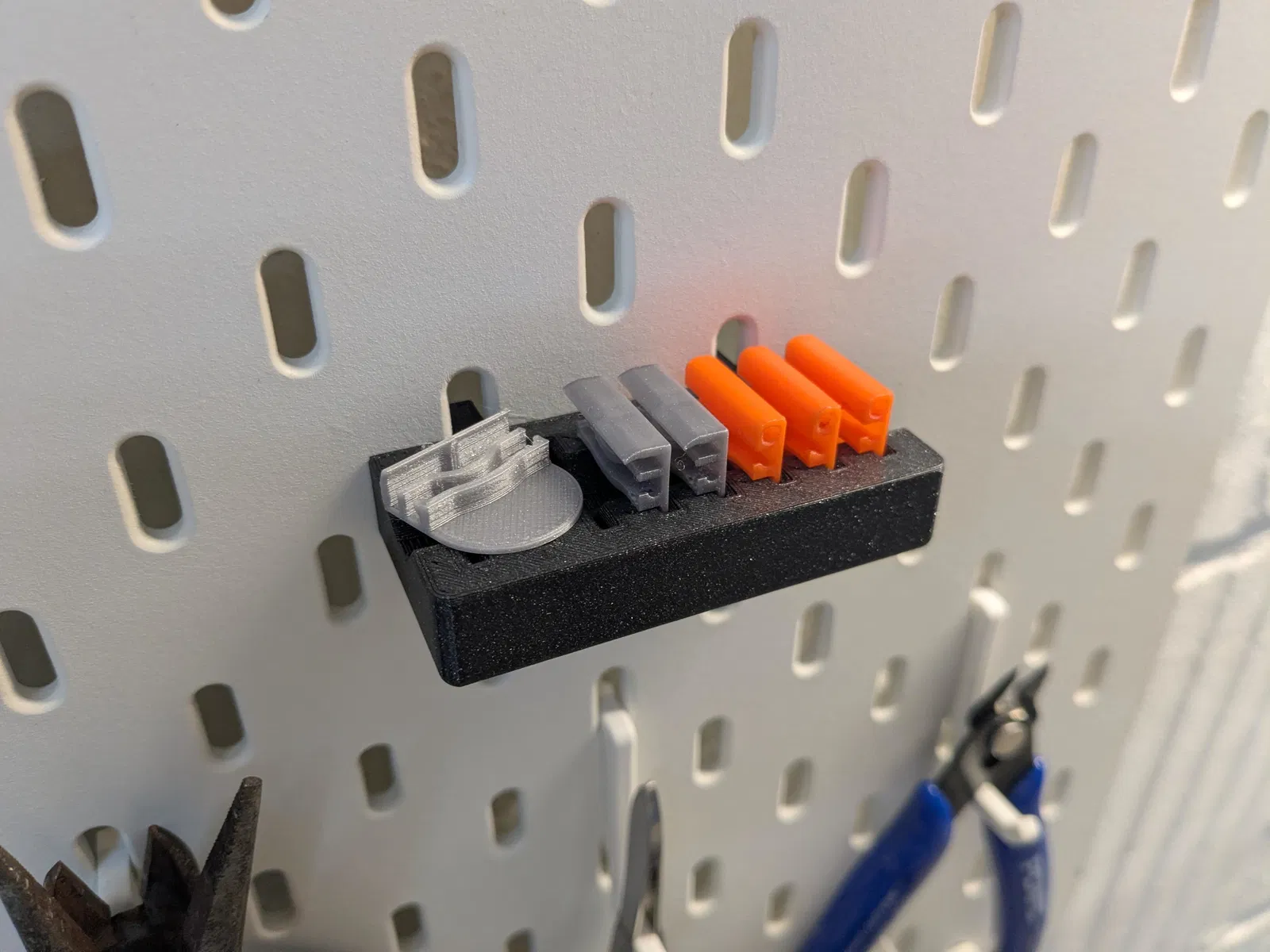 Sắp xếp gọn gàng góc làm việc của bạn với giải pháp lưu trữ Ikea Skadis này dành cho Grandma's Favorite Filament Clips của Extrutim.