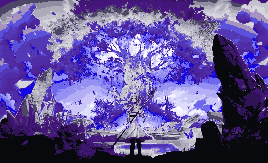 Mẫu Frieren Landscape làm bằng Hueforge. Kích thước 200 x 122.71mm, in 100% infill, layer height 0.08mm (base 0.16mm). Dùng 5 loại PLA+ và có hướng dẫn đổi màu theo từng layer để ra đúng hiệu ứng.
