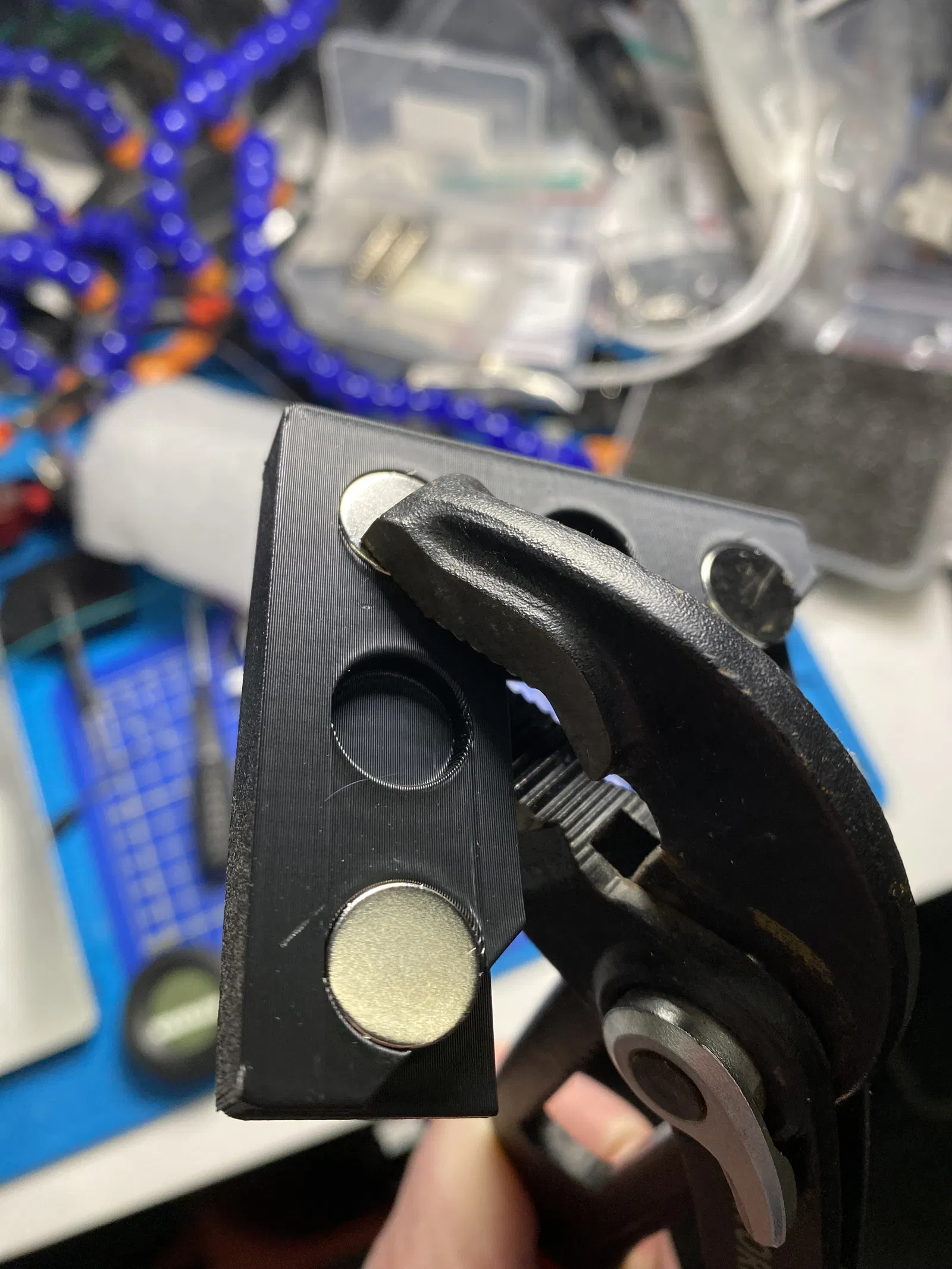 Các góc nam châm này giúp mình tháo ra và gắn lại các tấm plexiglass rất nhẹ nhàng, không rườm rà.