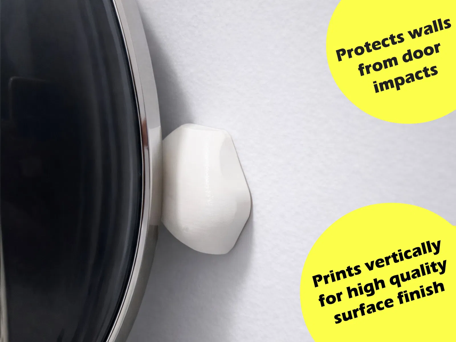 Miếng chặn cửa TPU vừa êm vừa đẹp, giúp hấp thụ lực va đập để bảo vệ tường, nẹp và nội thất. In theo phương thẳng đứng cho bề mặt mịn, tối ưu gyroid infill, dễ gắn bằng tape/keo.