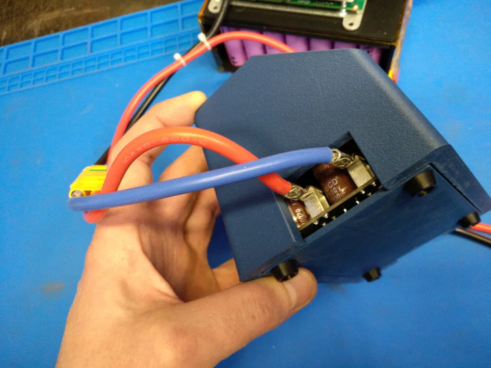 Vỏ được in bằng Fiberon Carbon Fiber ASA để tăng độ bền, chịu nhiệt và độ cứng. Khi in có dùng tree supports ở những chỗ cần thiết. Lắp ráp dùng ốc tiêu chuẩn M3 × 15 mm đầu dù (button head), không cần heat-set insert — lỗ bắt được canh để có thể vặn ốc trực tiếp vào nhựa (lỗ 3 mm) cho chắc. Phần chân đế dùng TPU để bám tốt và giảm rung. Bạn có thể dùng bất kỳ loại filament nào đang có sẵn.