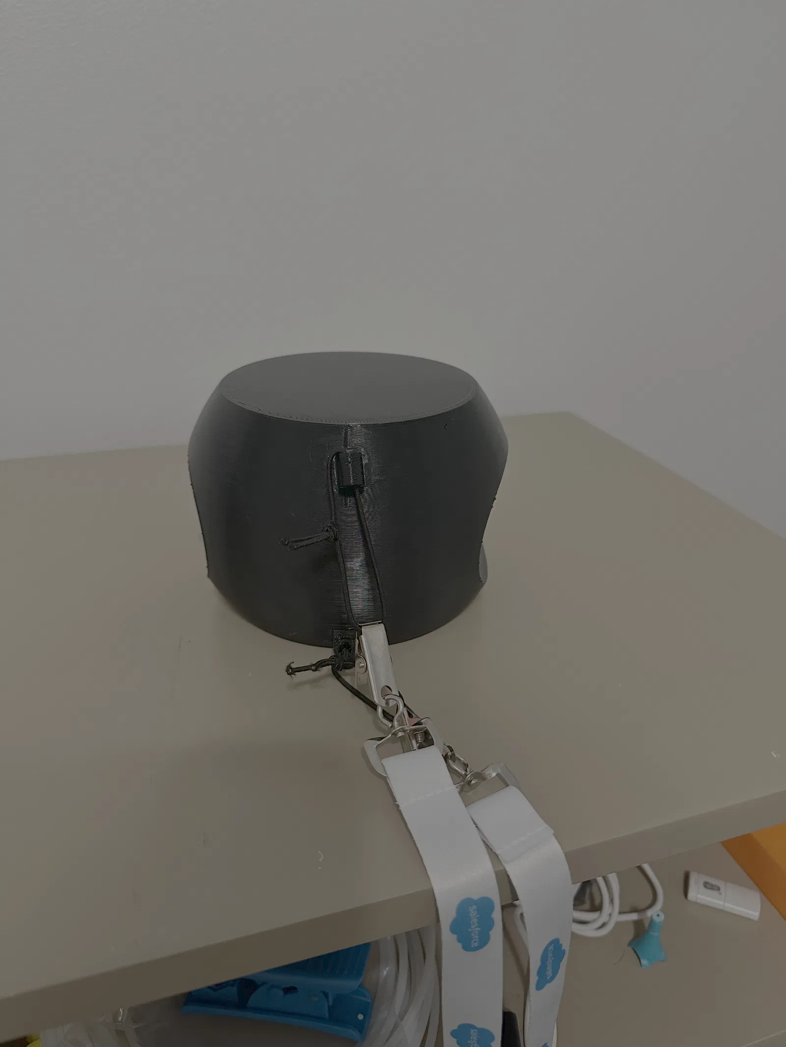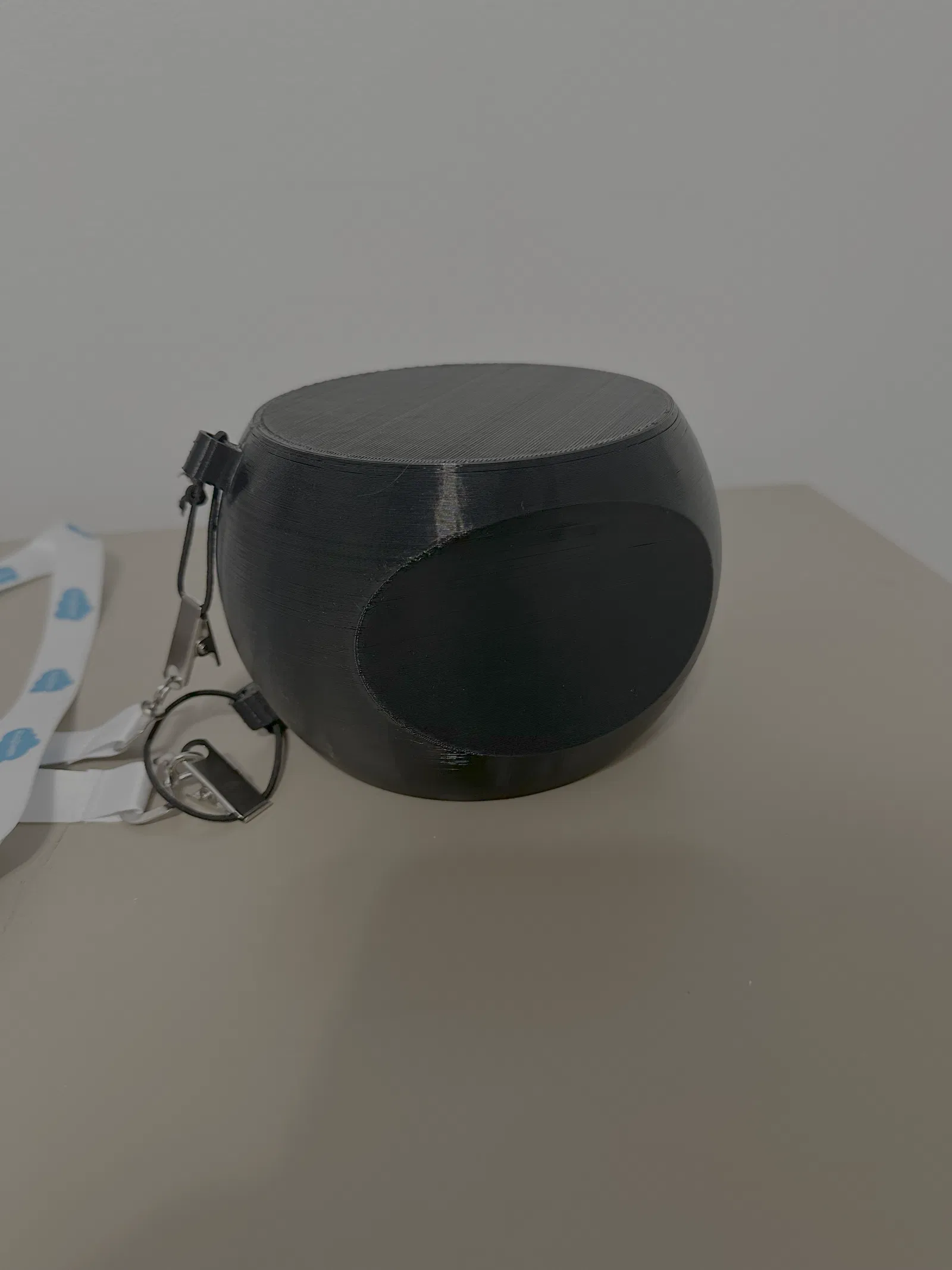 Bạn chắc cũng từng thấy mấy món training aid giúp kiểm soát cánh tay trong lúc swing. Quả bóng này được thiết kế để in bằng TPU để bạn có thể kẹp nhẹ giữa hai cẳng tay. Các miếng gắn dây (tether attachments) có thể in riêng rồi dán bằng keo siêu dính (superglue). Nhờ vậy bạn có thể luồn dây hoặc dây thun qua các lỗ, rồi nối vào một dây đeo dài hơn để khoác qua cổ, phòng trường hợp bóng rơi ra trong lúc tập. Cách này cũng giúp bạn cầm gậy dễ hơn rồi đặt bóng vào giữa hai cẳng tay. Các rãnh lõm hai bên bóng giúp canh tay cho thẳng và đúng vị trí hơn.