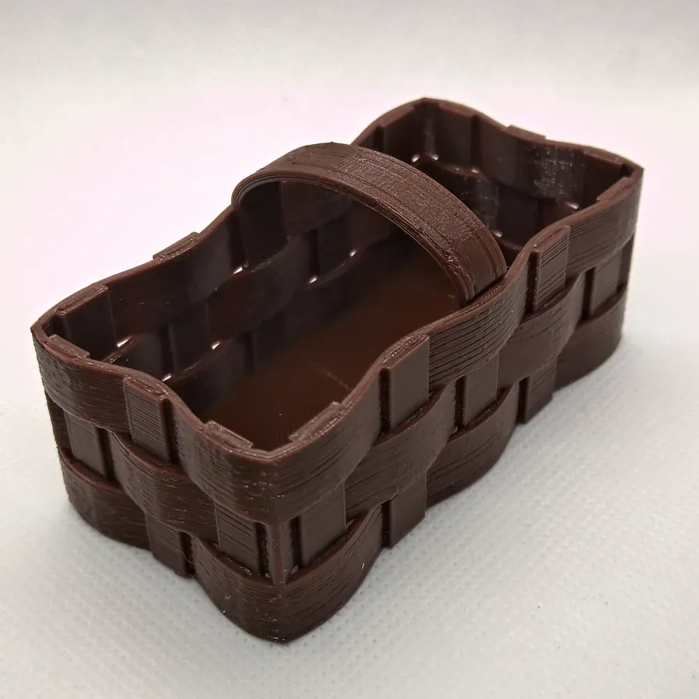 Der gelbe Korb war eine frühe Version. Die kleinen Lücken habe ich aufgefüllt. Er wurde ohne Support gedruckt. Das ist nicht zu empfehlen.
