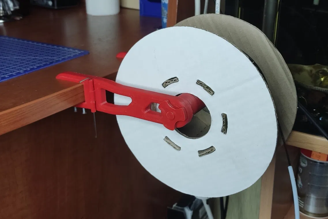 Mẫu giá đỡ cuộn filament thiết kế để gắn/cố định ở mép bàn, giúp đặt cuộn gọn gàng và cấp filament thuận tiện khi in 3D.
