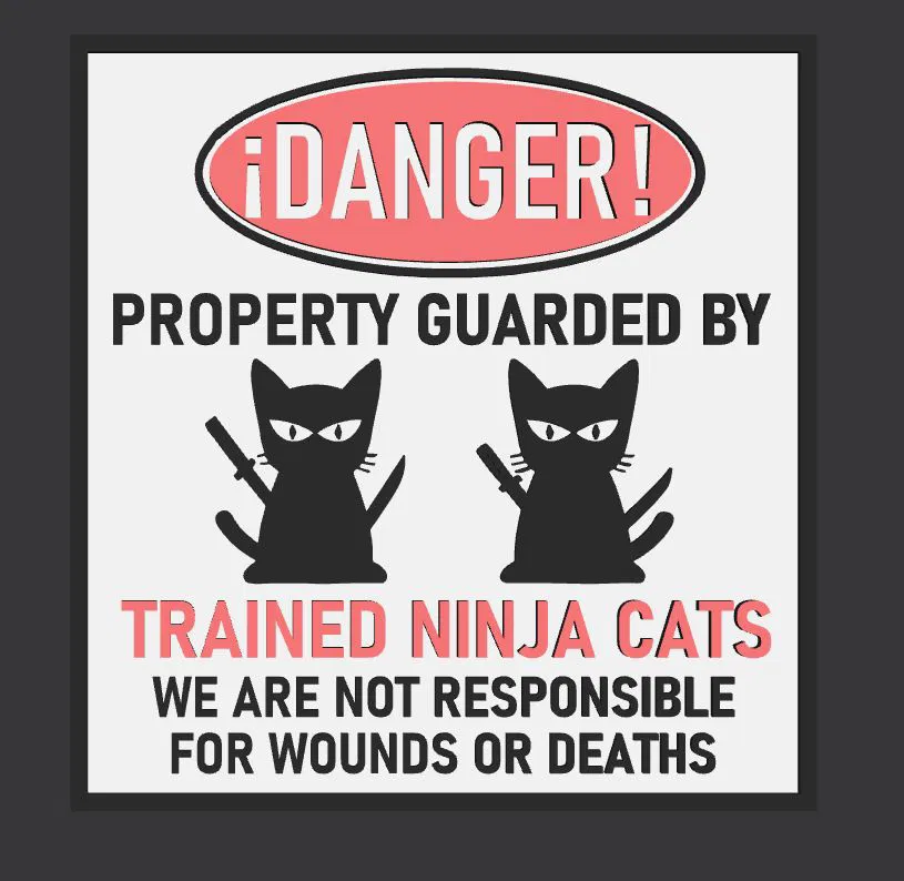 Mẫu bảng cảnh báo phong cách comic, kích thước 132 x 137 mm (có thể chỉnh bằng laminator). Thiết kế in 3 màu theo từng lớp: trắng đến 1 mm, đen đến 3 mm và đỏ đến 4 mm.