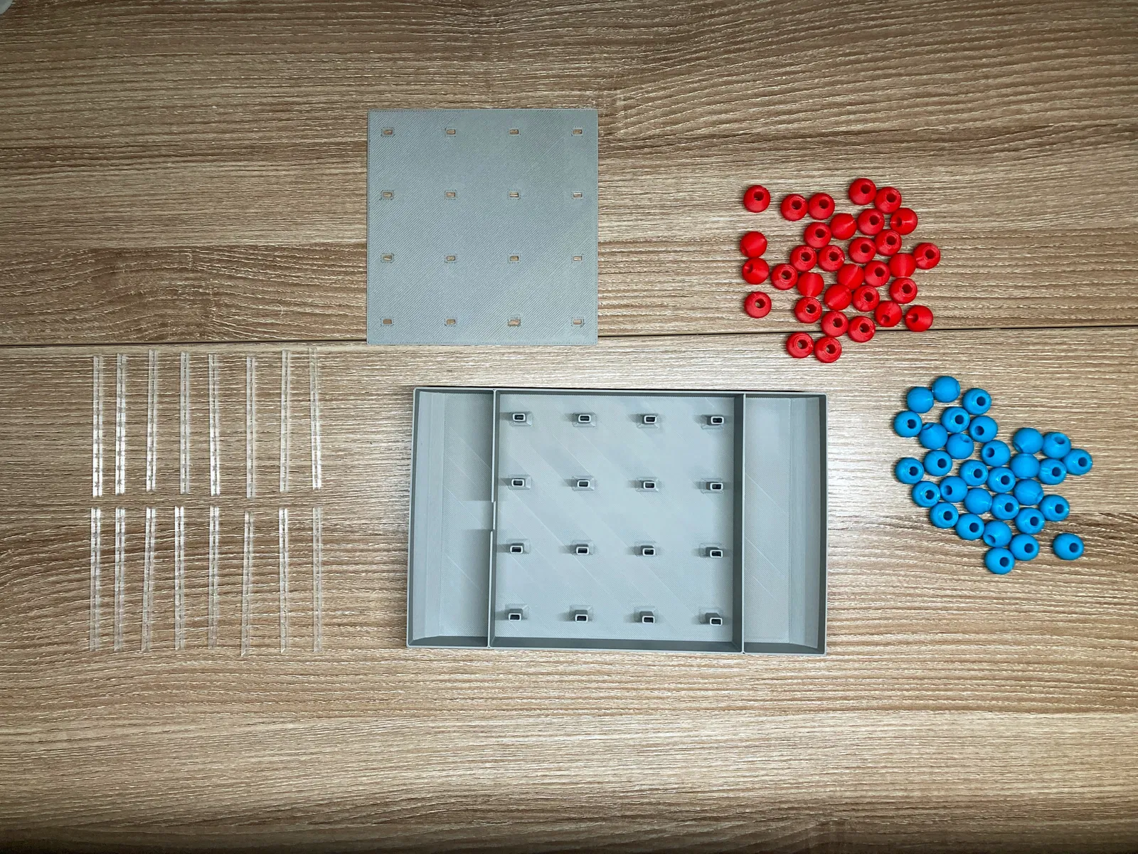 In bằng PLA: 16x rod, 32x quân cho mỗi màu, 1x base, 1x cover, và (tuỳ chọn) in TPU 1x lid.