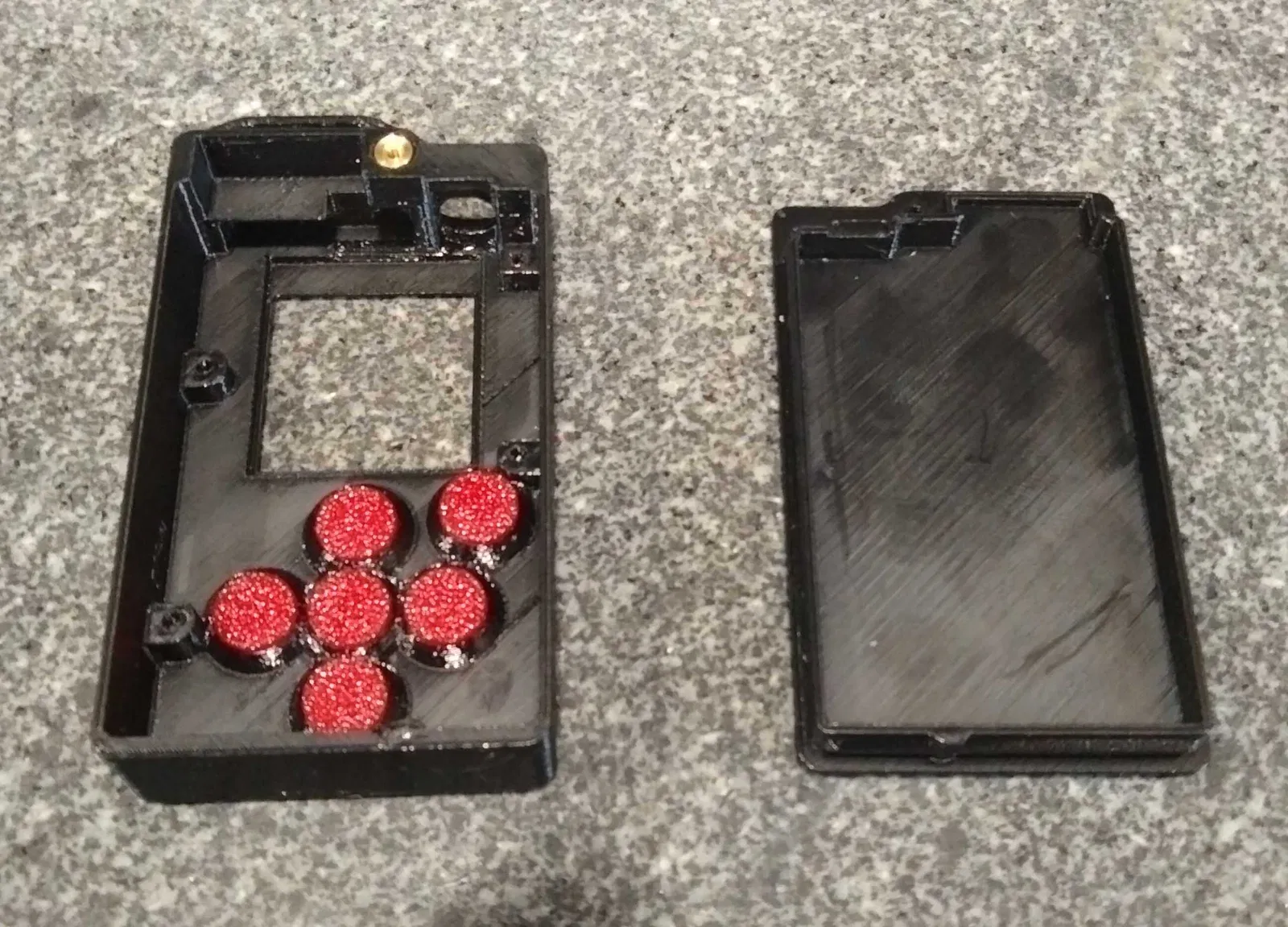 Khi in, đặt các chi tiết sao cho mặt ngoài của outer shell úp xuống build plate. Nút (buttons) đặt theo hướng flare-down. Phần sleeve có thể đặt với đầu trên (mở hơn) hướng lên để in dễ hơn. Có file STEP tùy chọn cho phần detail trên front plate, dùng để làm outline multi-material trên mặt trước nếu bạn thích kiểu này hơn là làm recess.