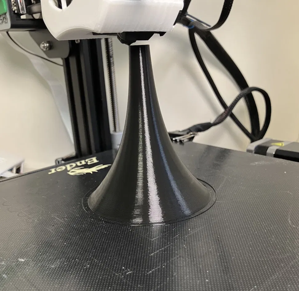 Mình cần hình này cho một chi tiết cơ khí, rồi phát hiện ra hàm plot_revolution() của BOSL2. Nhưng bạn cũng có thể in nó theo kiểu bình (vase mode) 1 lớp tường để làm một cái horn dùng được.