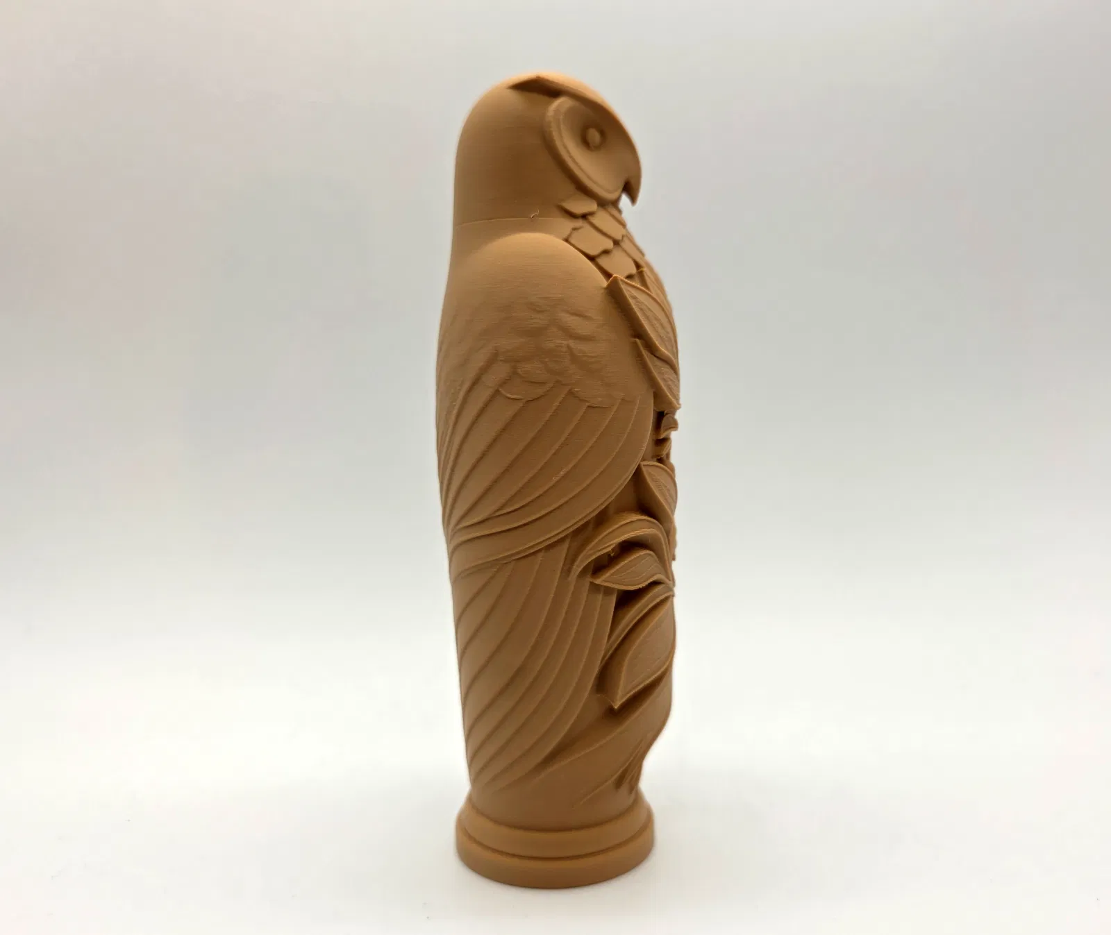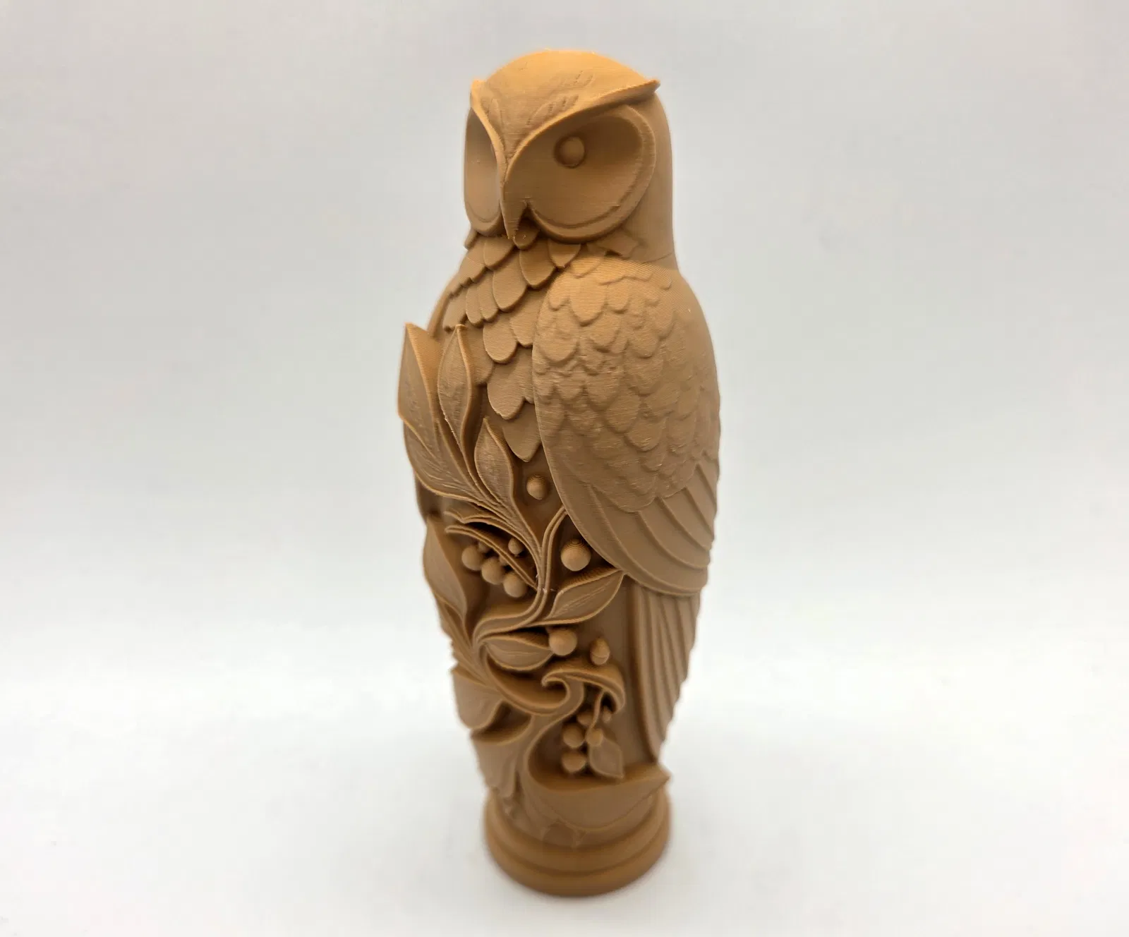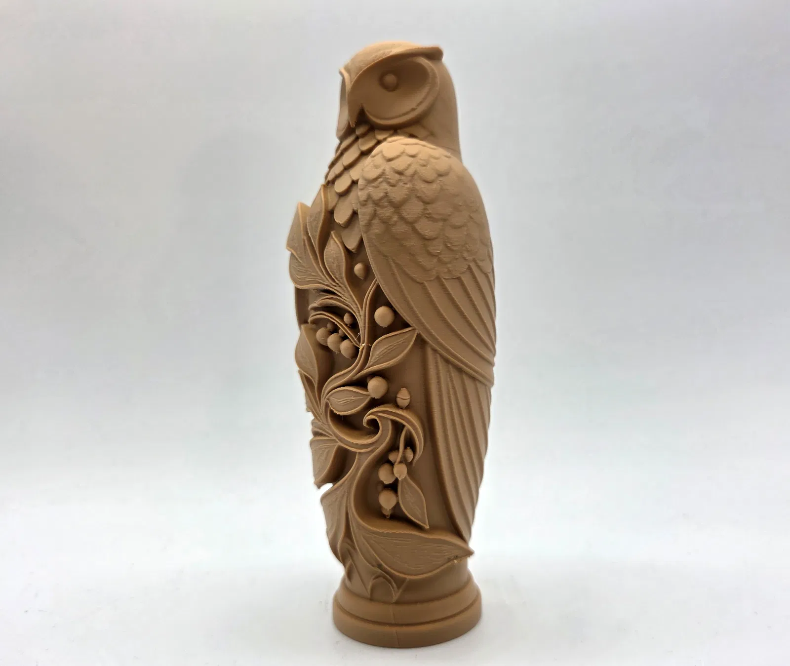 Mẫu tượng cú mèo chạm khắc trên cành ô liu, có thể scale kích thước, đáy phẳng nên dễ in. Chỉ cần ít supports (Tree supports), tháo gỡ nhanh gọn. Xem thêm trọn bộ sưu tập động vật của mình.