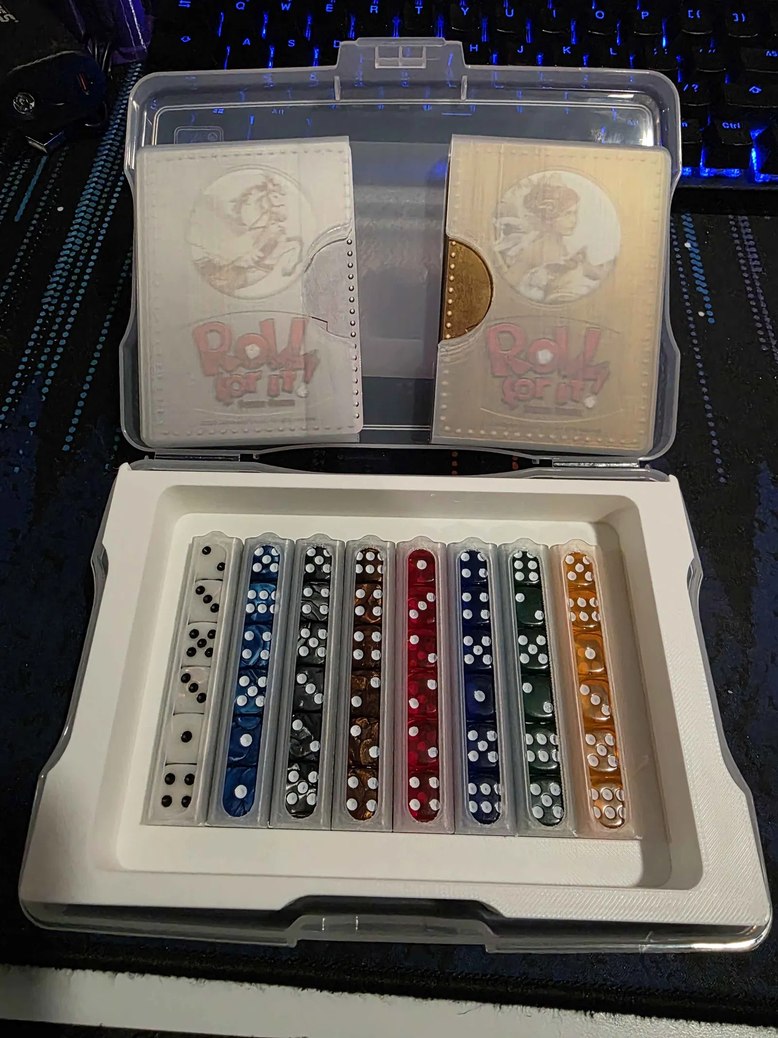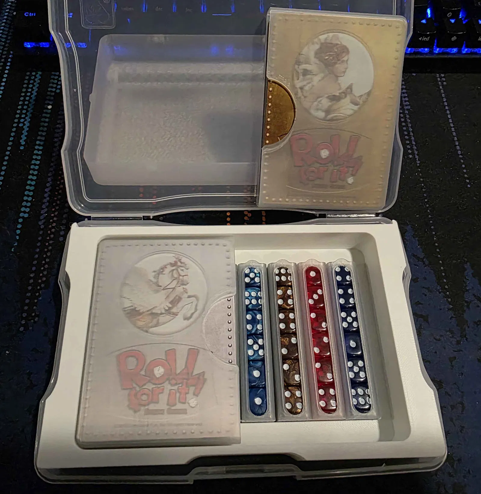 Bản remix insert Roll for it! Deluxe để vừa trong hộp Photo Caddy 4x6, dựa trên organizer của ManicResin. Cần dùng lại Dice Tube và Deck Sleeve từ model gốc để hoàn thiện bộ lưu trữ.