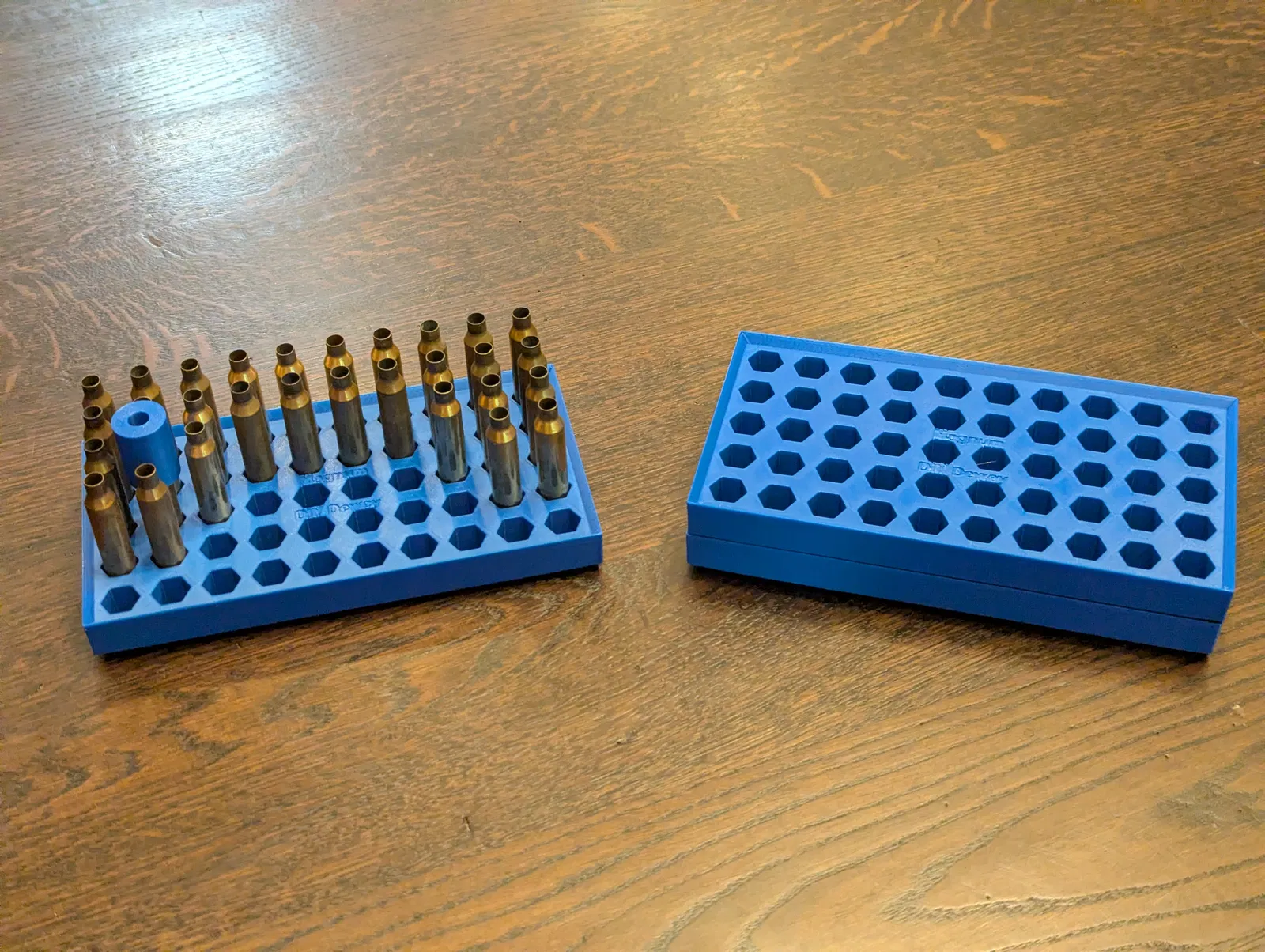 Nhưng nếu sau này có lỡ quên, mấy cái reloading tray này sẽ giúp bạn tiết kiệm thời gian, tiền bạc, và cả Vihtavuori quý giá nữa! Chỉ cần nhìn xem có “ánh sáng” xuyên qua vỏ đạn hay không trước khi đổ liều (charge) là biết liền!