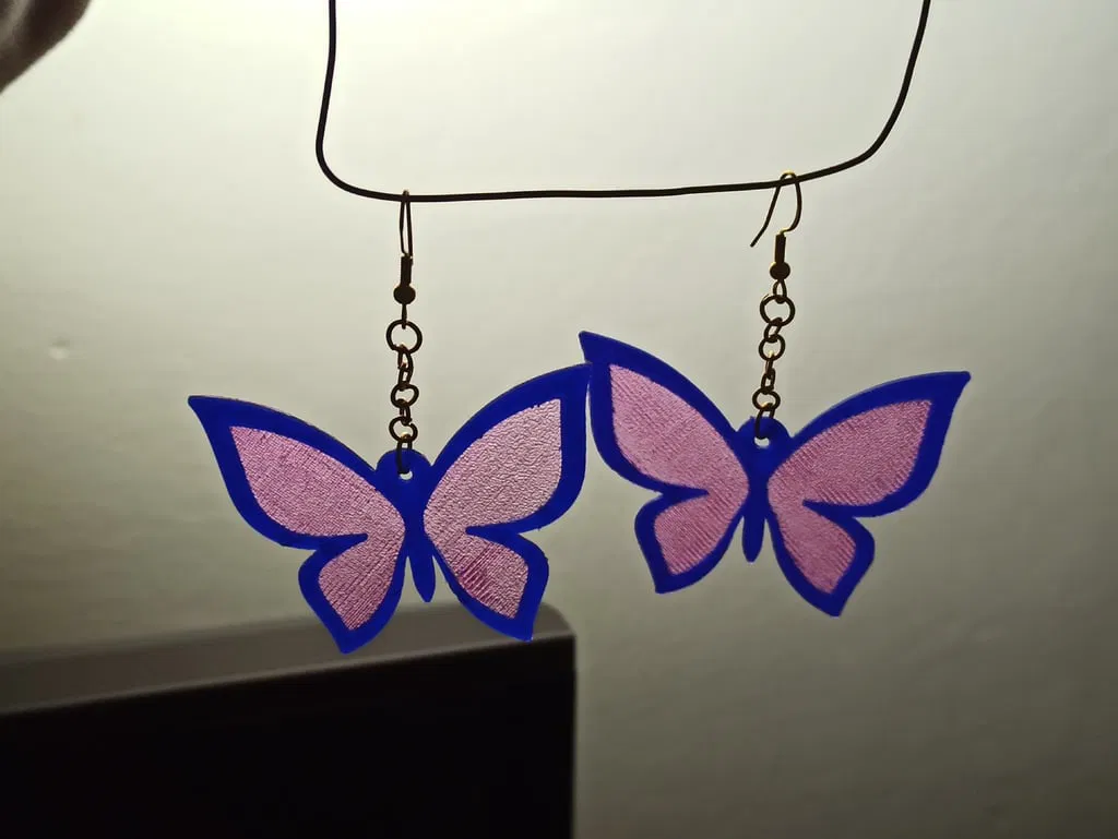 Mẫu 3D bông tai hình bươm bướm có thể dùng làm mặt dây chuyền hoặc móc khóa. Phù hợp làm phụ kiện thời trang cho nữ, dễ in và tiện mang theo hằng ngày.
