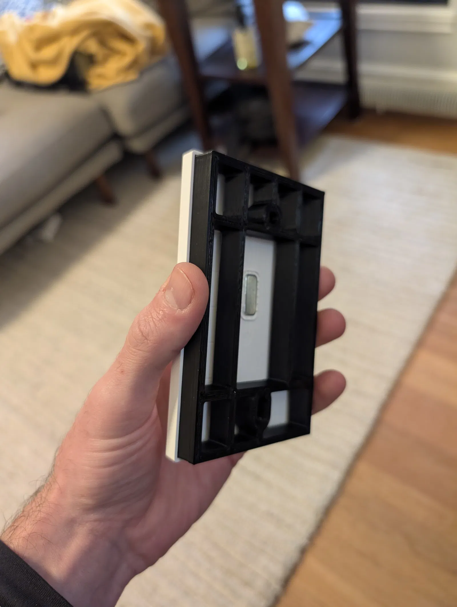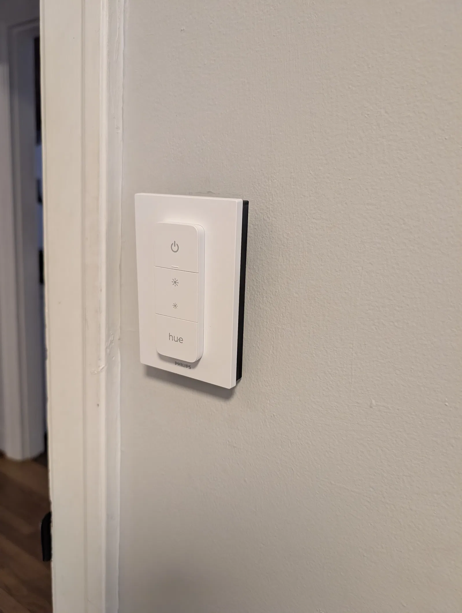 Miếng spacer này tạo một cầu nối giữa hộp điện âm tường hiện tại và Hue backplate. Dùng chính ốc bắt ban đầu để “kẹp/sandwich” cả cụm lại với nhau, bạn sẽ có vẻ ngoài gọn gàng, gần như phẳng sát tường, đồng thời vẫn giữ công tắc cũ hoạt động như phương án dự phòng.