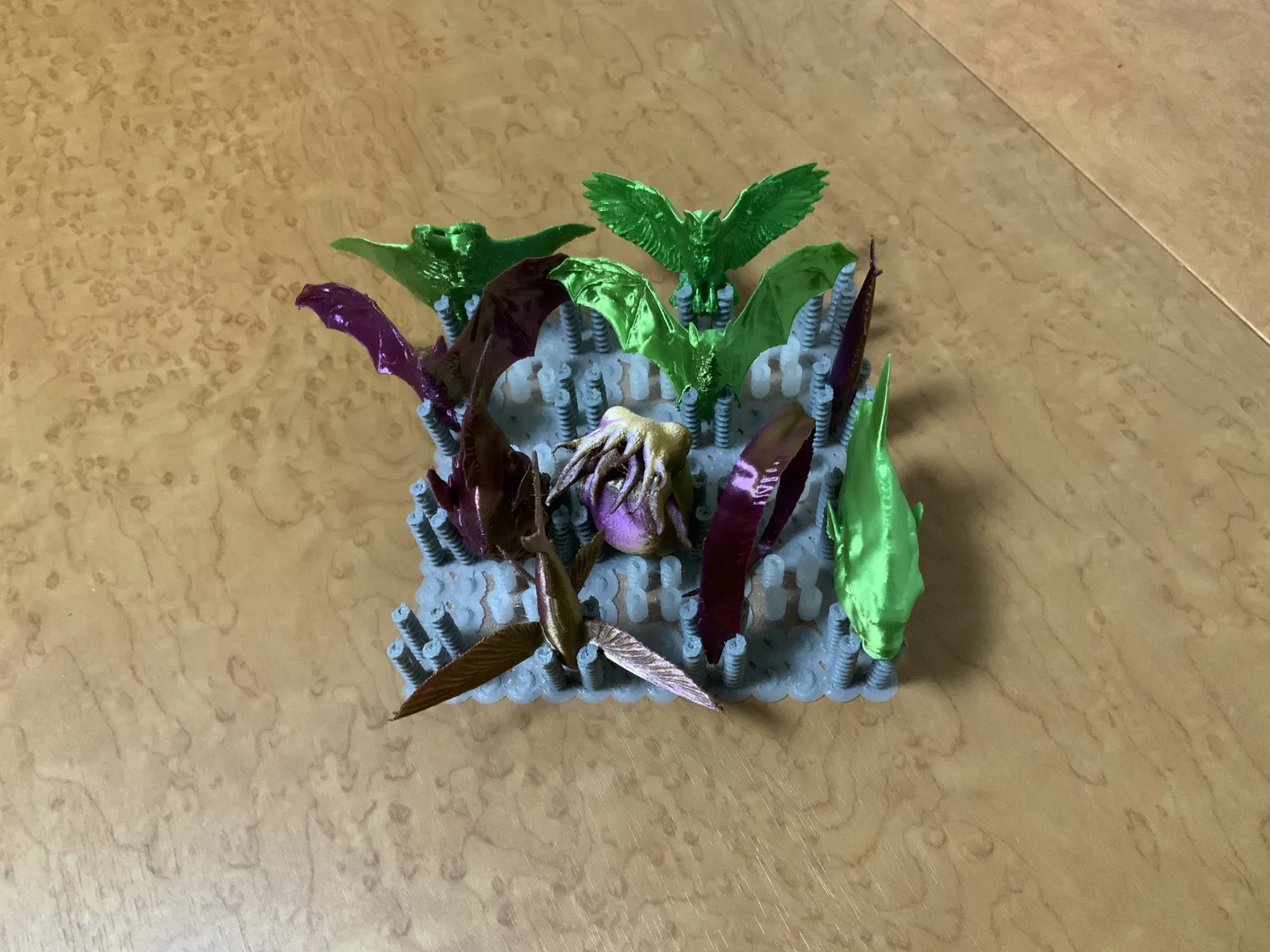 Mẫu “The Coilded Planet - Display Stand Alternatives” được làm để có đế trưng bày cho các con thú mini. Nhớ bật brim trong slicer, chọn đúng kích thước brim theo từng file STL và dùng PLA+; có hướng dẫn chỉnh pattern trong 3D Builder.