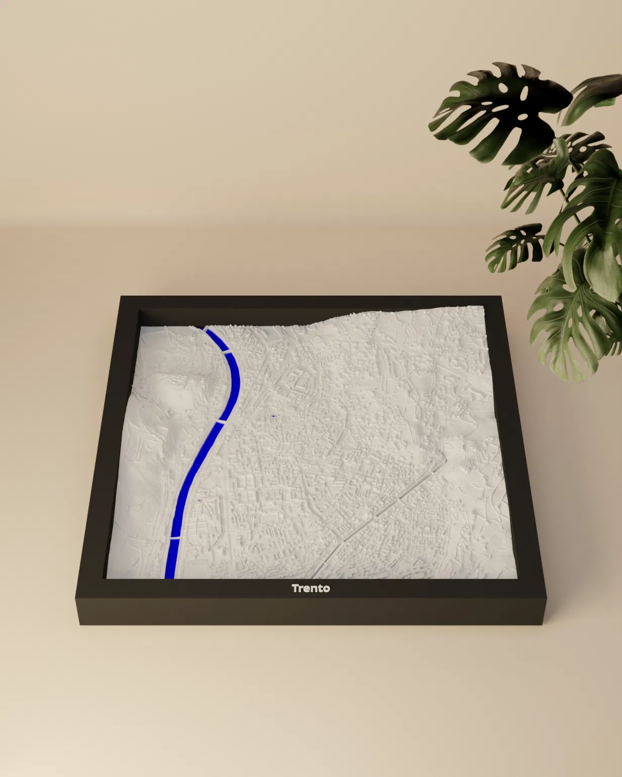 Mô hình địa hình thu nhỏ Trento (Ý) dựa trên dữ liệu địa lý, thu nhỏ từ khu vực 2.819 x 2.809 km xuống 170.5 x 170.5 mm. Có STL/3MF, nhiều khung kèm lỗ treo, profile tối ưu cho Bambu & Snapmaker.