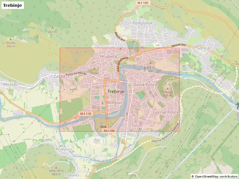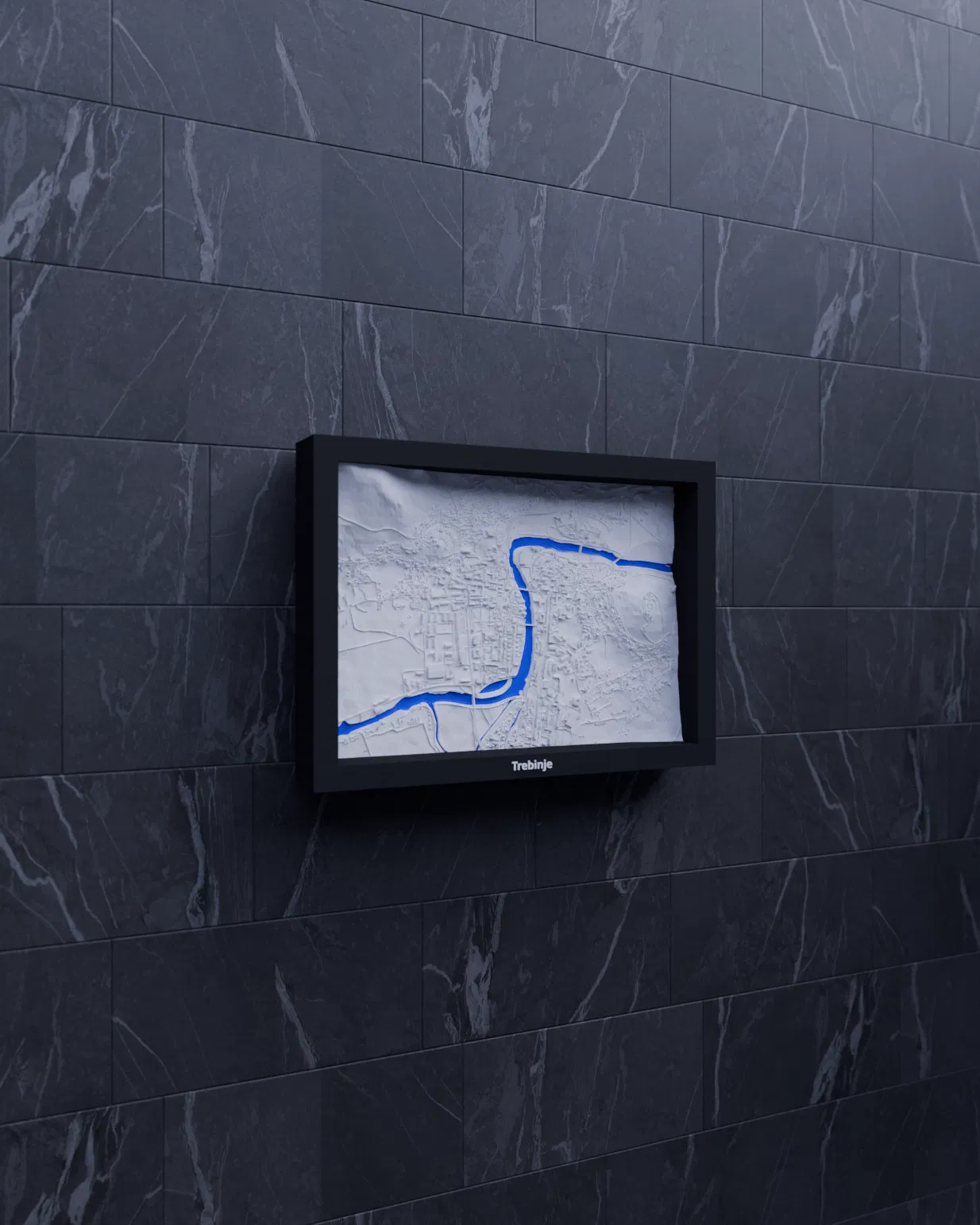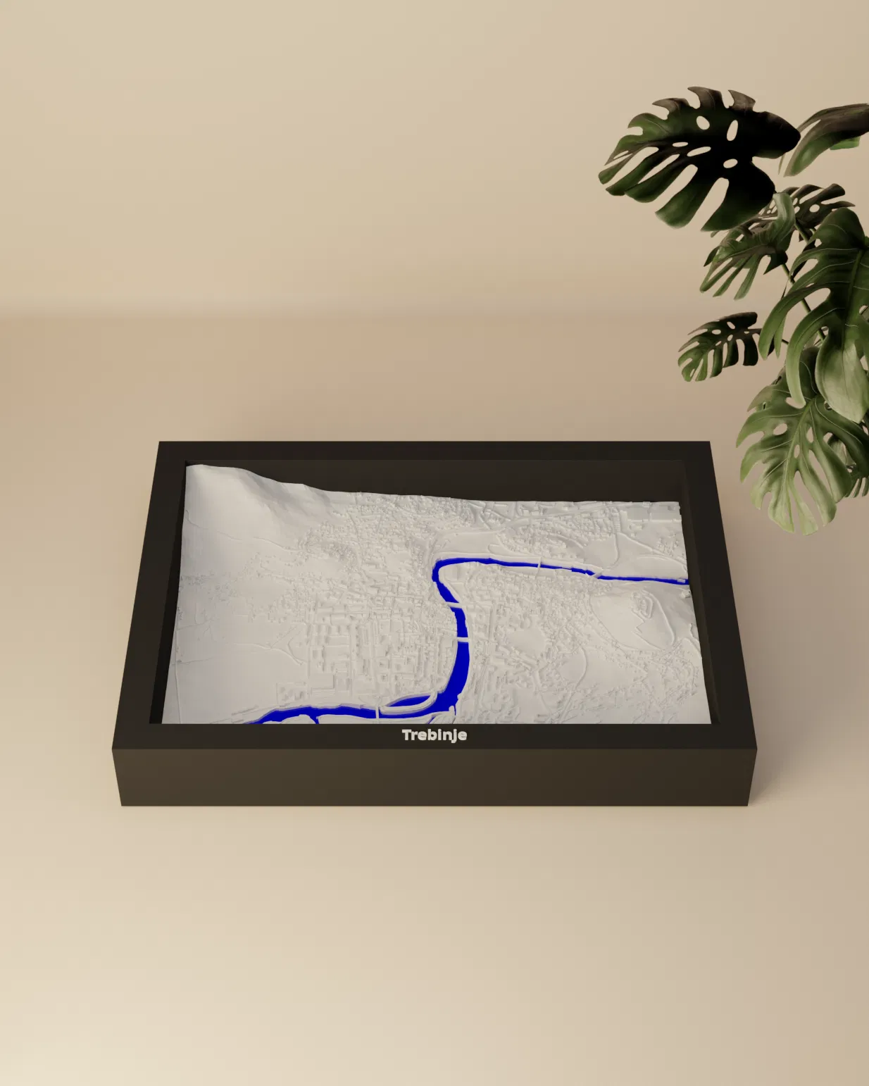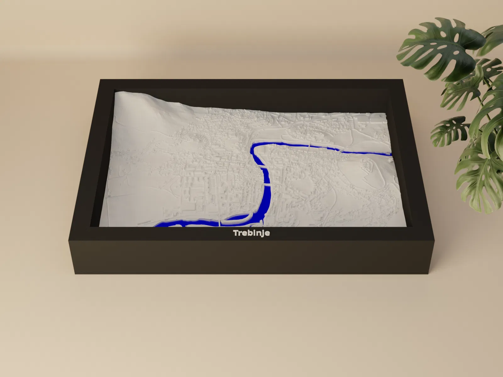 Mô hình thu nhỏ địa hình 3D của Trebinje (Bosnia và Herzegovina), dựng từ dữ liệu địa lý thật. Thu nhỏ khu vực 2.818×1.968 km xuống 170.5×119.5 mm, có STL/3MF và nhiều tùy chọn frame để trưng bày hoặc treo tường.