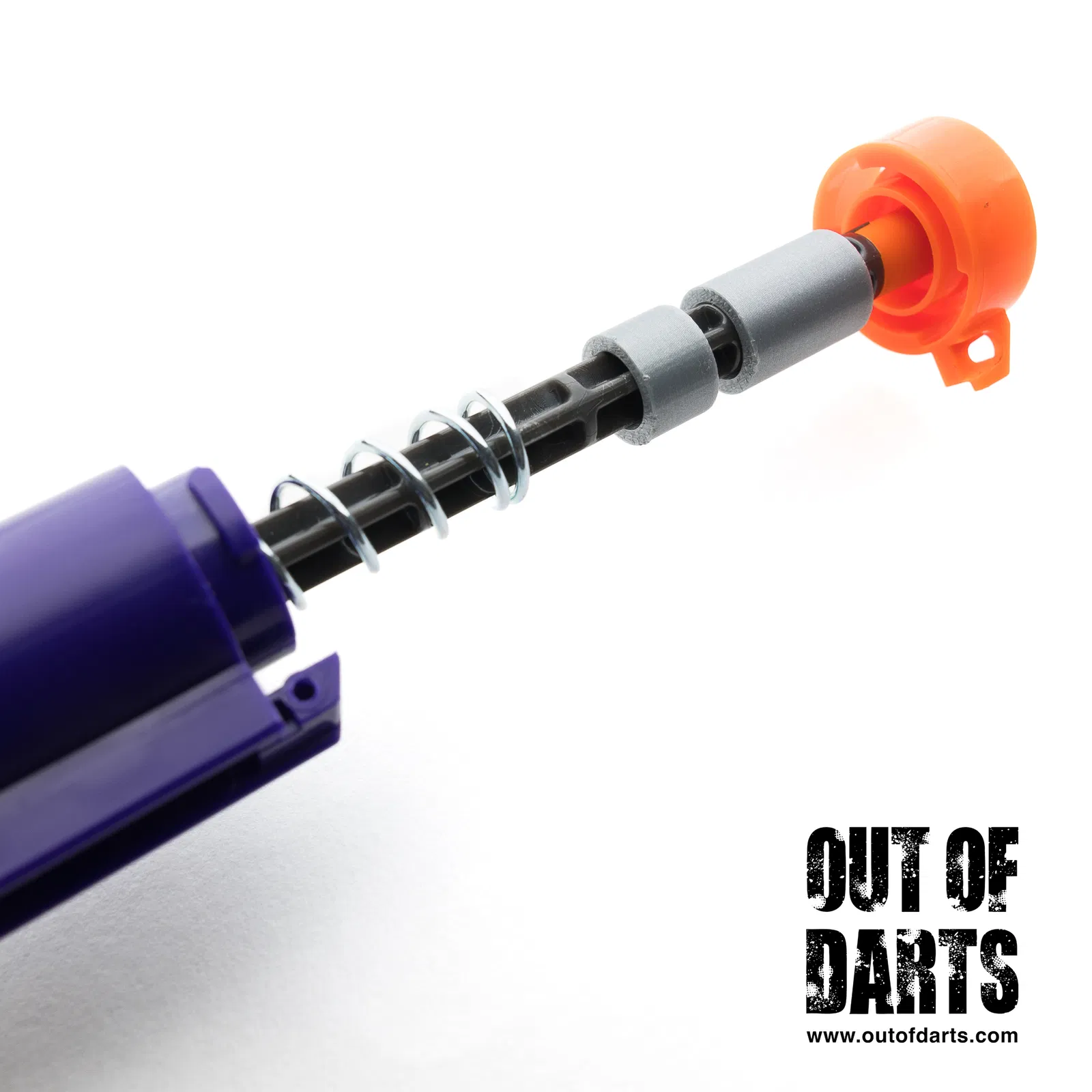 Bộ spacer cho Nexus Pro X gồm 3 spacer đầy và 1 spacer nửa, giúp tăng pre-compression cho stock spring theo từng nấc, lắp không cần dụng cụ. Dùng để tinh chỉnh FPS; lưu ý không cất blaster khi đang lắp spacer.