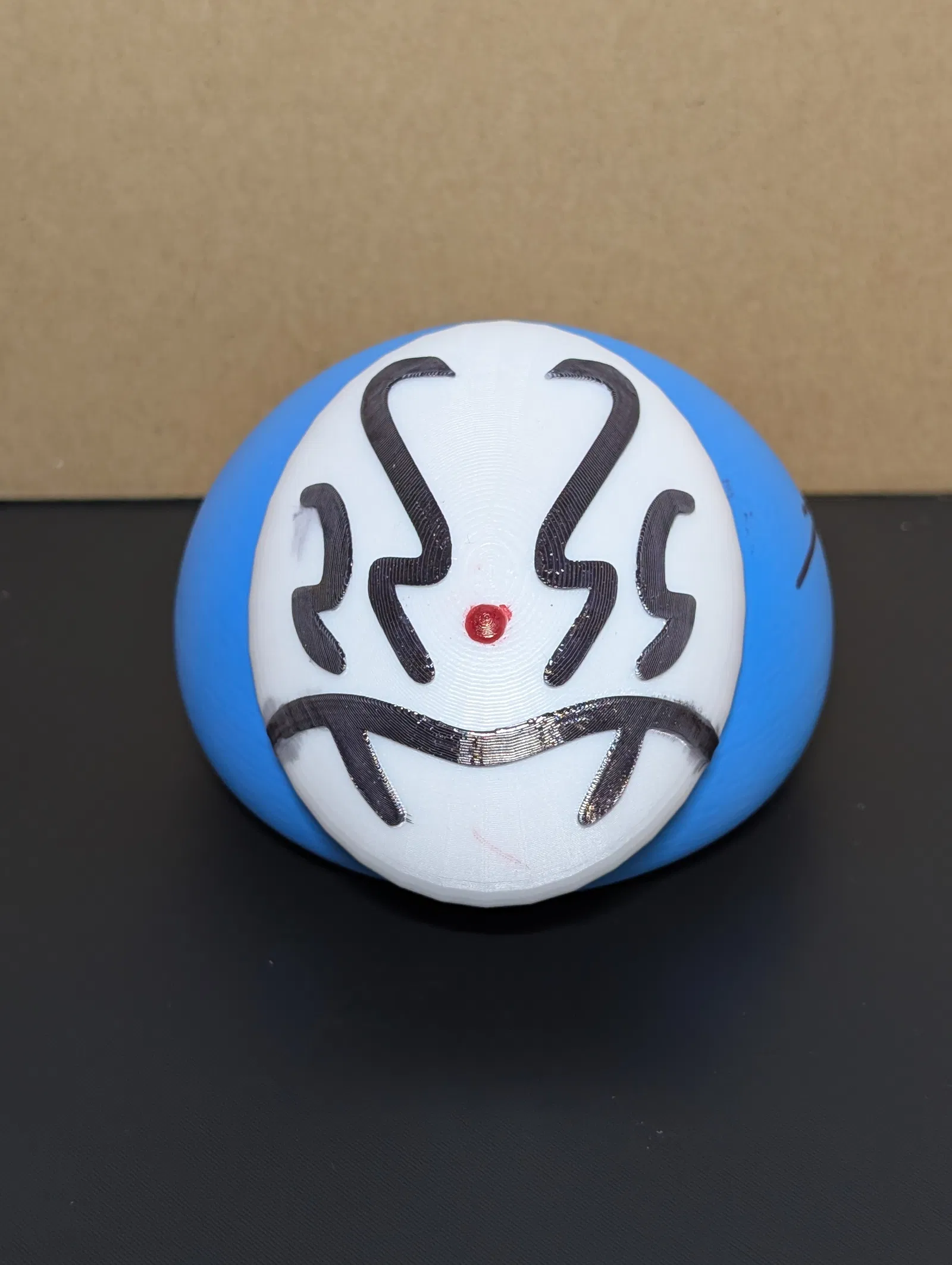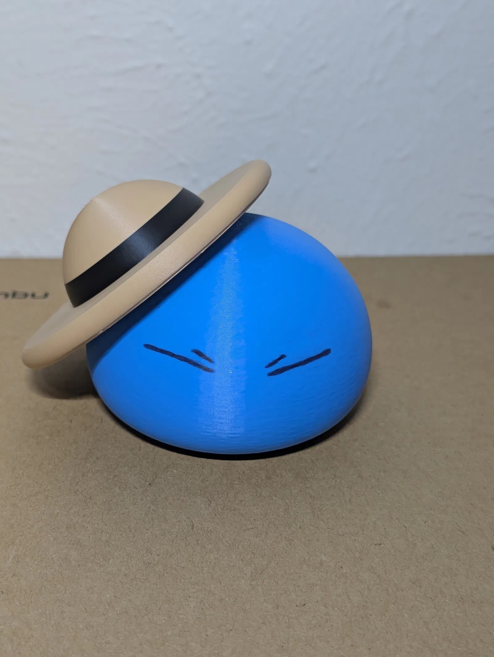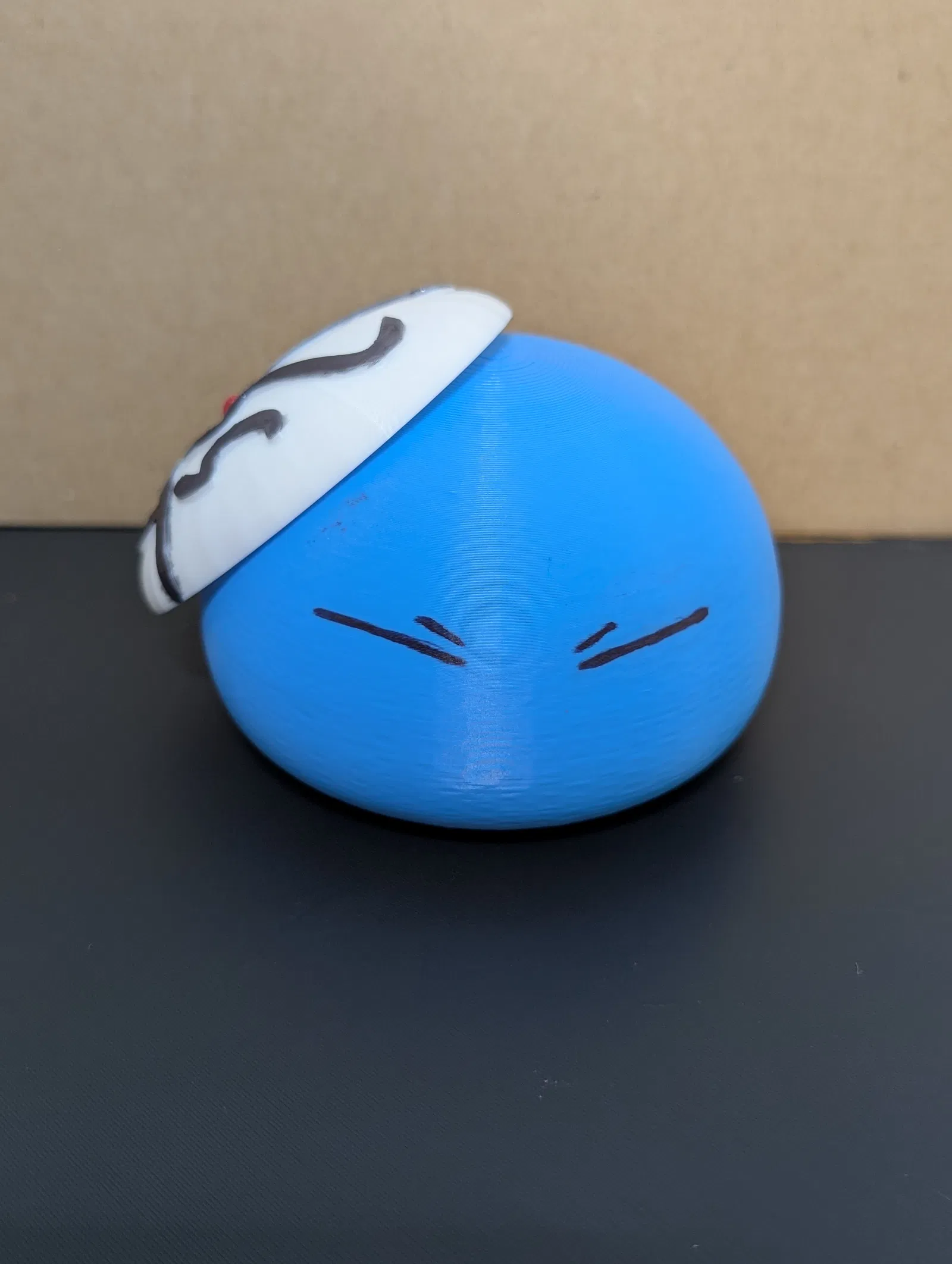 Mô hình Rimuru Tempest Slime dựa theo dạng slime trong anime That Time I Got Reincarnated as a Slime. In 2 màu xanh/trắng rồi tô mặt nạ và mắt; in 3 màu sẽ đổi filament rất nhiều và hao khoảng 105g.