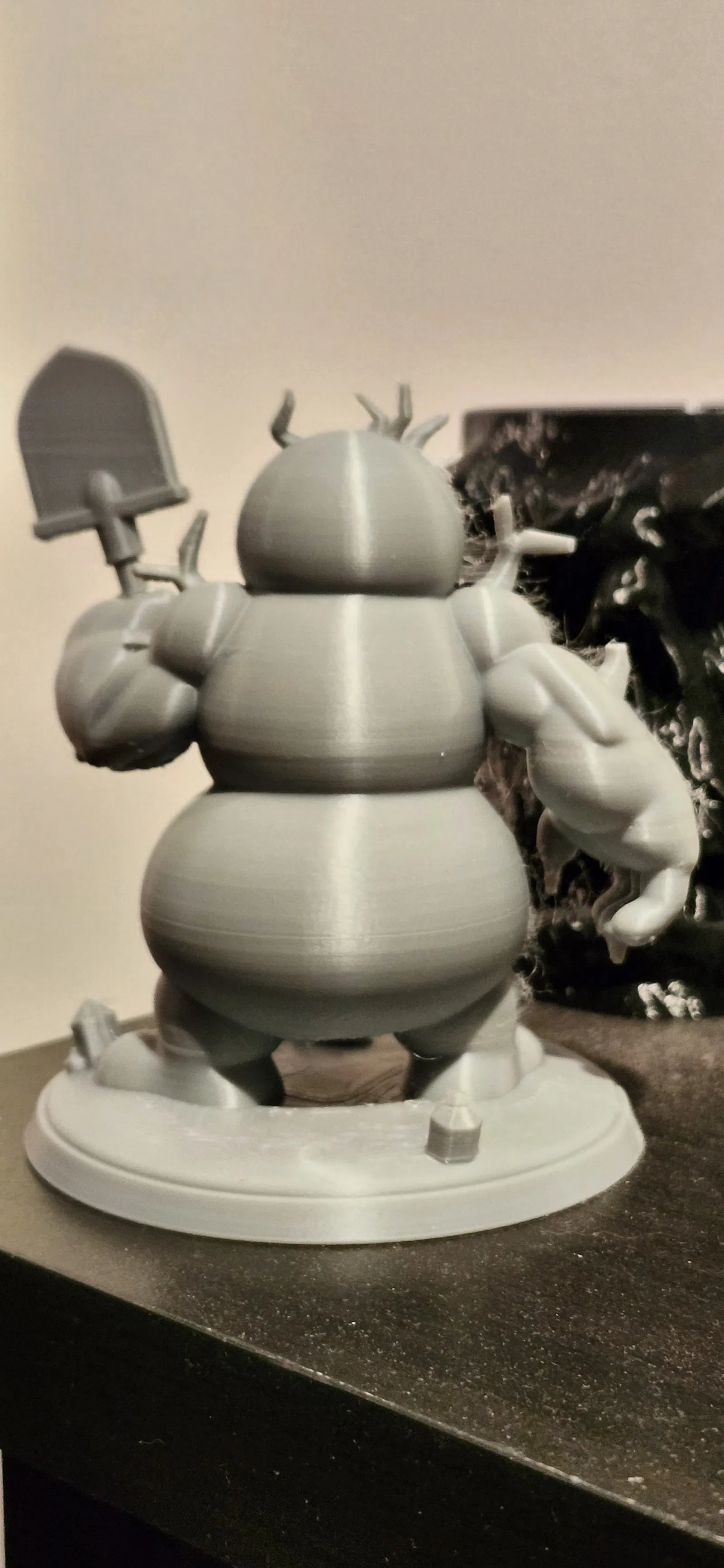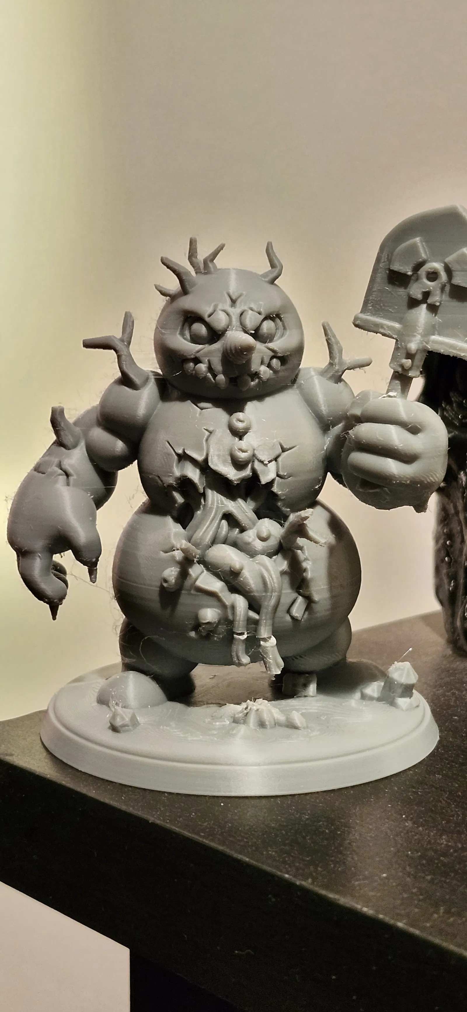 Vì mình không giỏi sculpt 3D nên thử dùng AI và ra một “radioactive snowman” kèm chút gore. Mẫu in PLA với nozzle 0.4, layer 0.08, organic tree support; gỡ support nên nhẹ tay kẻo gãy chi tiết.
