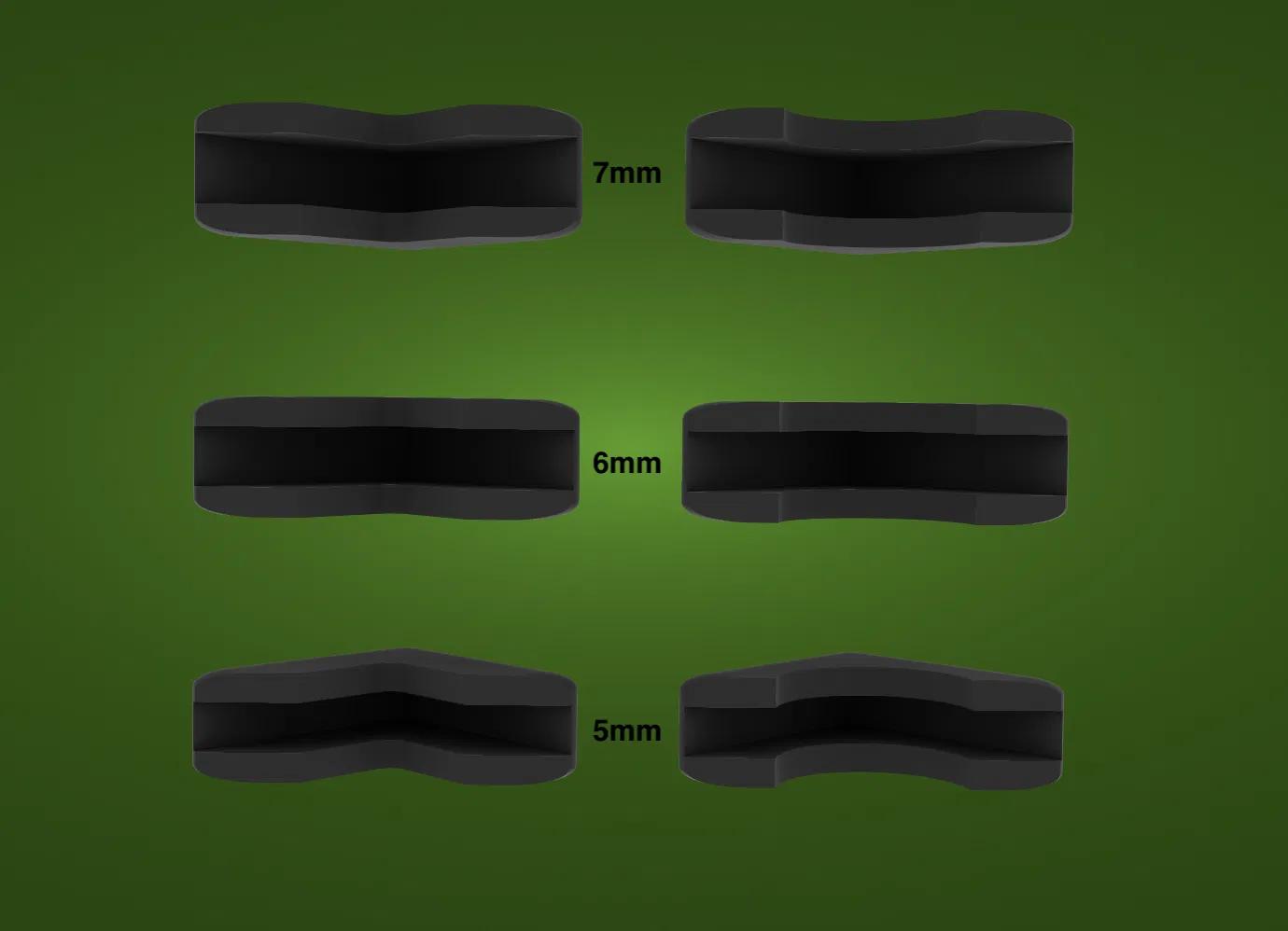 Bộ corner guard nhỏ 30×30mm gồm 2 kiểu (khoét tròn hoặc chữ nhật bo góc) với 3 độ dày lỗ trong 5/6/7mm. Tối ưu cho TPU, dễ scale, in dọc dạng kim tự tháp, infill ≤15%.