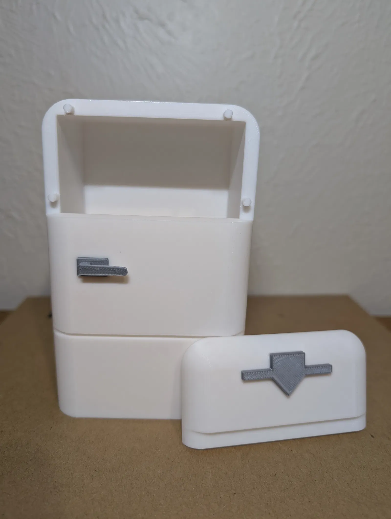 Mô hình dựa trên weapons locker trong map Zombies Tranzit (BO2). Cửa dưới và tay nắm dạng snap-fit. Cửa trên lắp vừa thân chính, tháo ra được để bạn cất đồ bên trong.