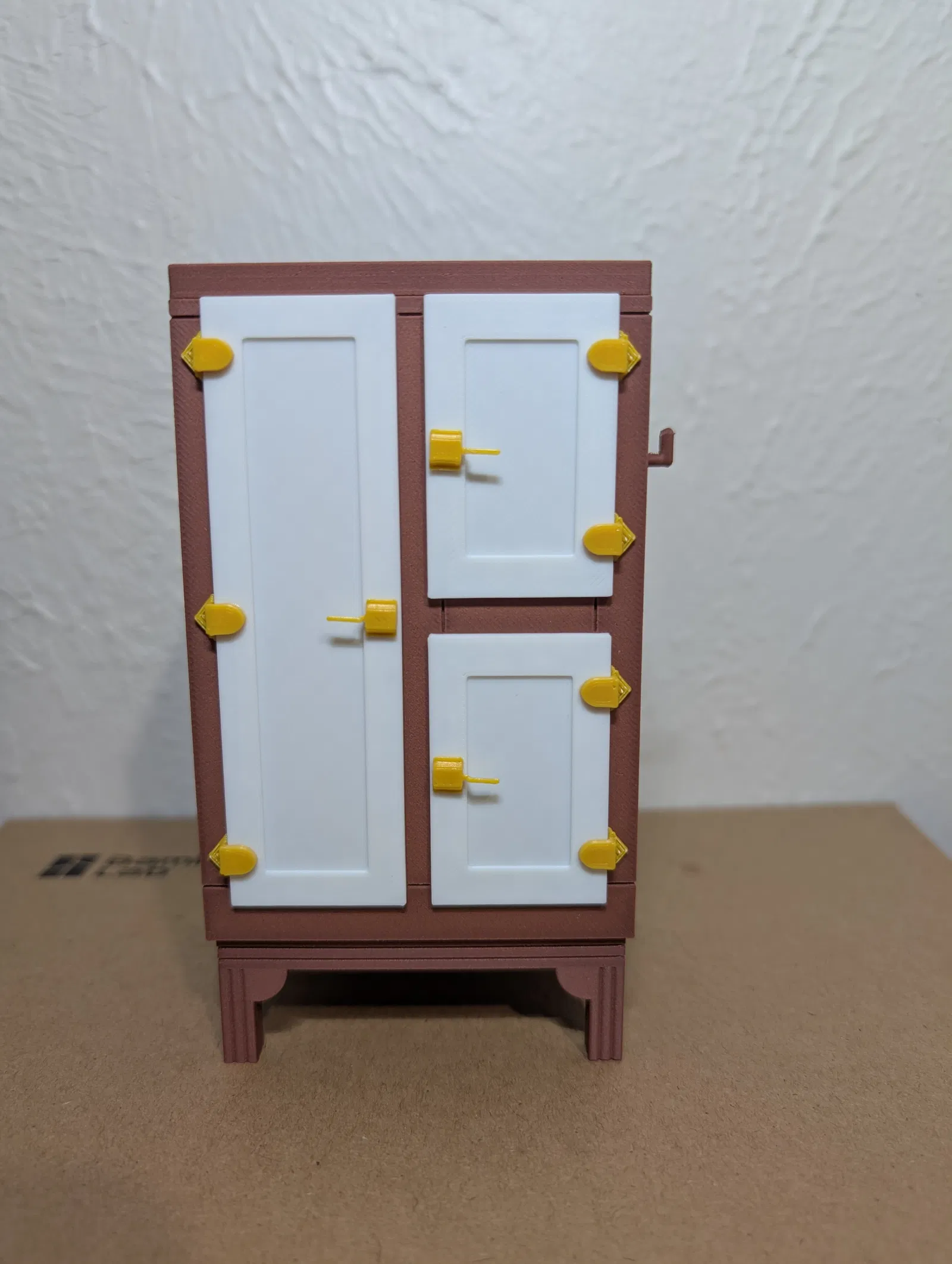 Dán tất cả các chi tiết tủ nhỏ vào đúng vị trí của nó. Trên các cánh cửa có mấy cái gờ dẫn hướng để canh.