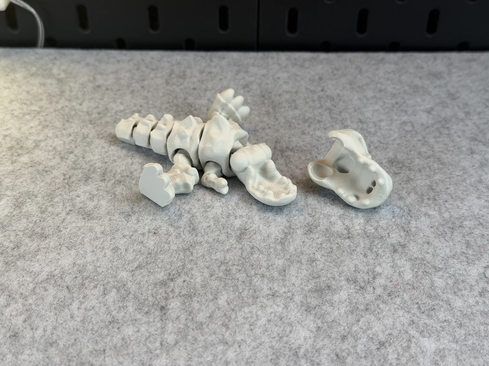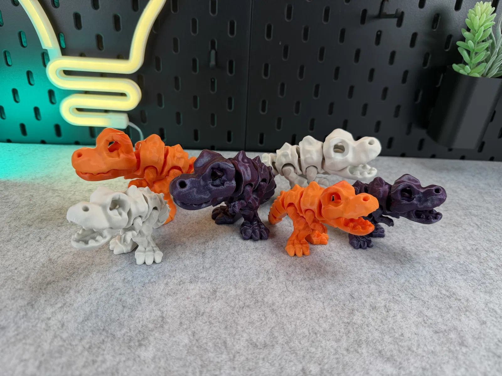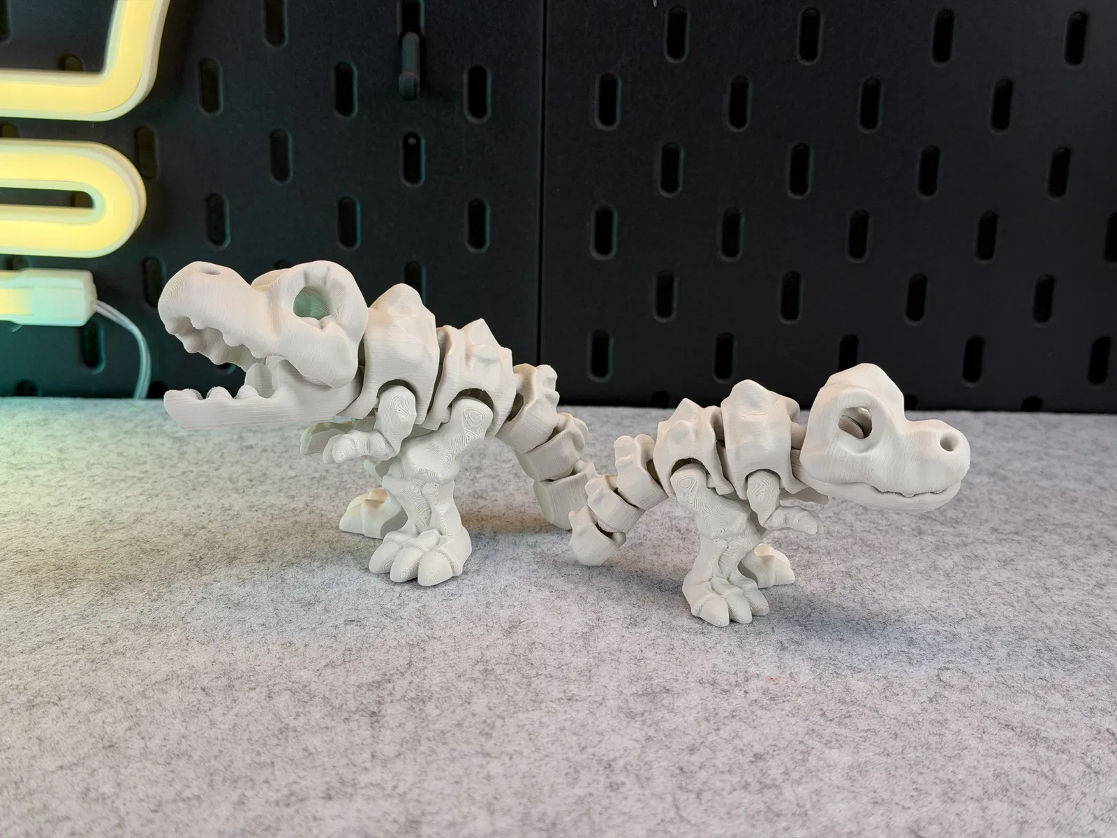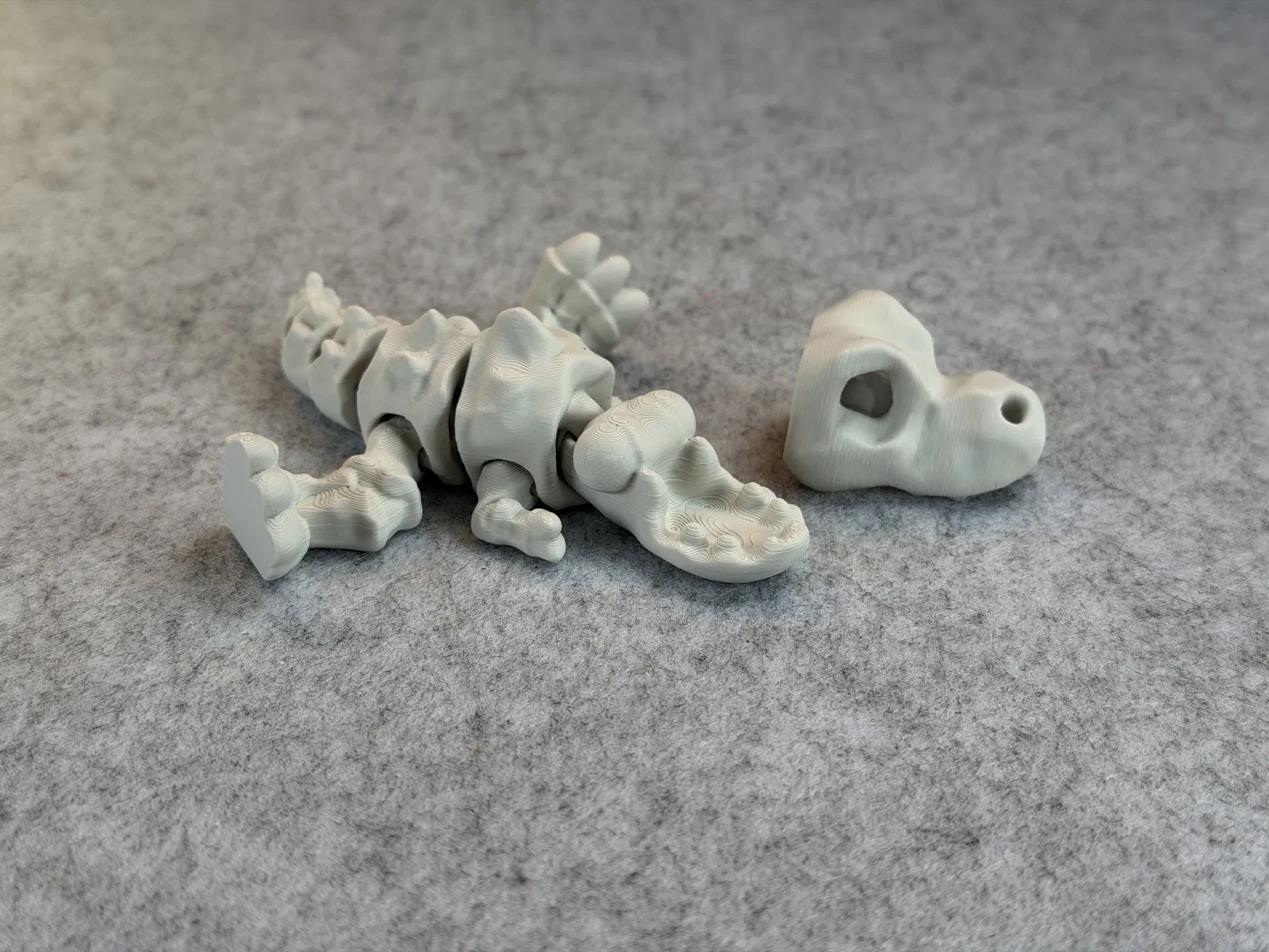 Articulated Skeleton Trex (1 màu) dạng flexi/khớp nối, có thể đứng và há miệng “cắn” vui. In PLA không cần supports; lưu ý không scale nhỏ hơn để các khớp vẫn hoạt động và cẩn thận khi gắn đầu.
