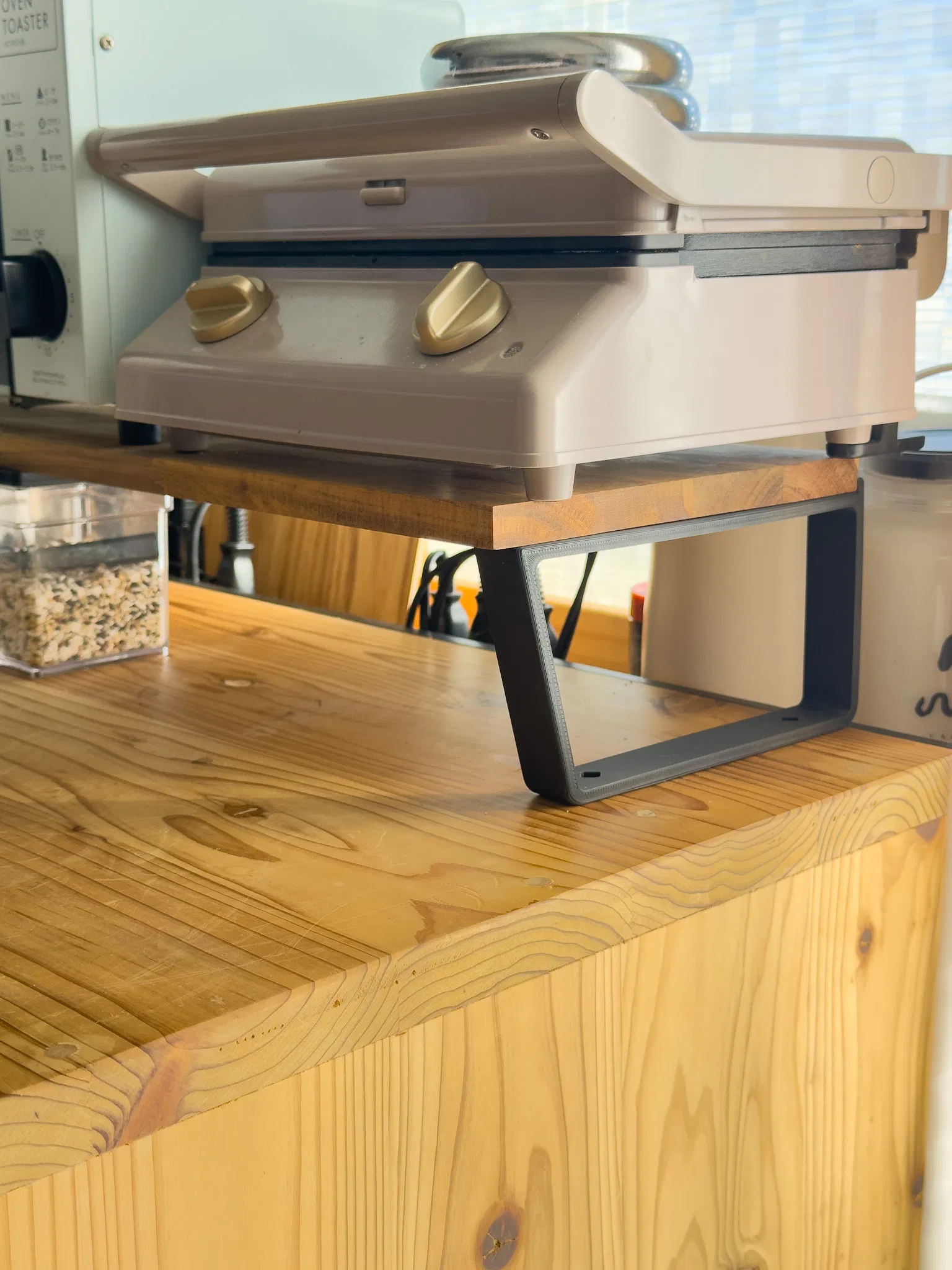Phiên bản V2 nâng cấp để in chính xác và ổn định hơn. Bộ chân gắn vào tấm ván sâu 200mm giúp bạn tự làm desk shelf/kệ màn hình gọn gàng, lắp nhanh chỉ với vít 4mm và 1 cây tua vít.