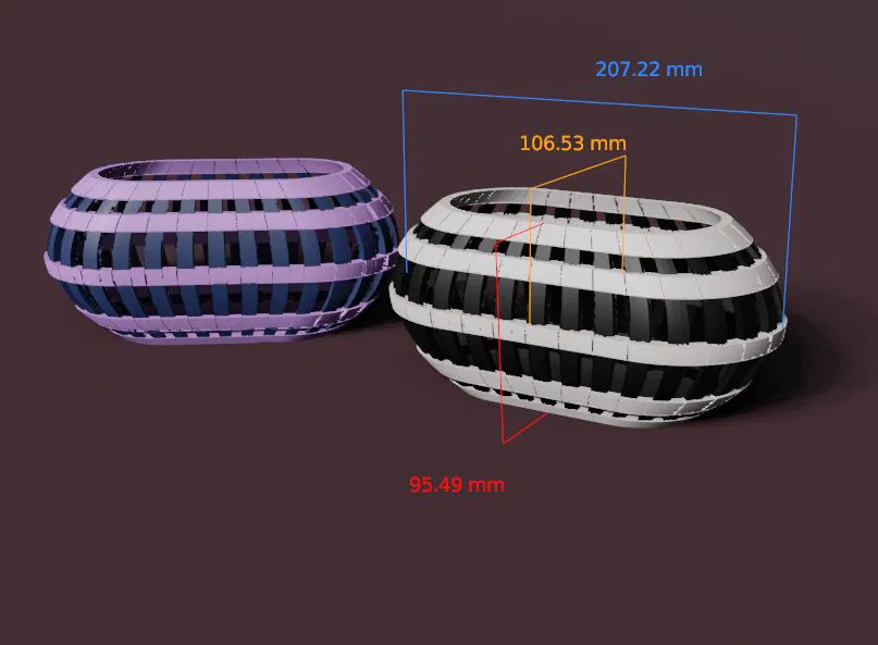 Chiếc giỏ đựng đồ hình oval này là một giải pháp lưu trữ cực kỳ hữu ích và mang tính thẩm mỹ cao, phù hợp để đặt trên bàn làm việc, bàn trang điểm hay bất kỳ đâu trong nhà bạn. Với thiết kế độc đáo, tựa như những thanh xếp xen kẽ nhau, chiếc giỏ không chỉ giúp bạn cất giữ đồ đạc một cách gọn gàng mà còn góp phần tô điểm cho không gian sống thêm phần hiện đại và tinh tế. Bạn có thể dùng chiếc giỏ này để đựng đủ thứ trên đời, từ bút viết, kéo, remote TV, cho đến các vật dụng nhỏ như chìa khóa, dây sạc. Việc in 3D chiếc giỏ này cũng không quá phức tạp, bạn có thể tùy chỉnh kích thước theo nhu cầu.