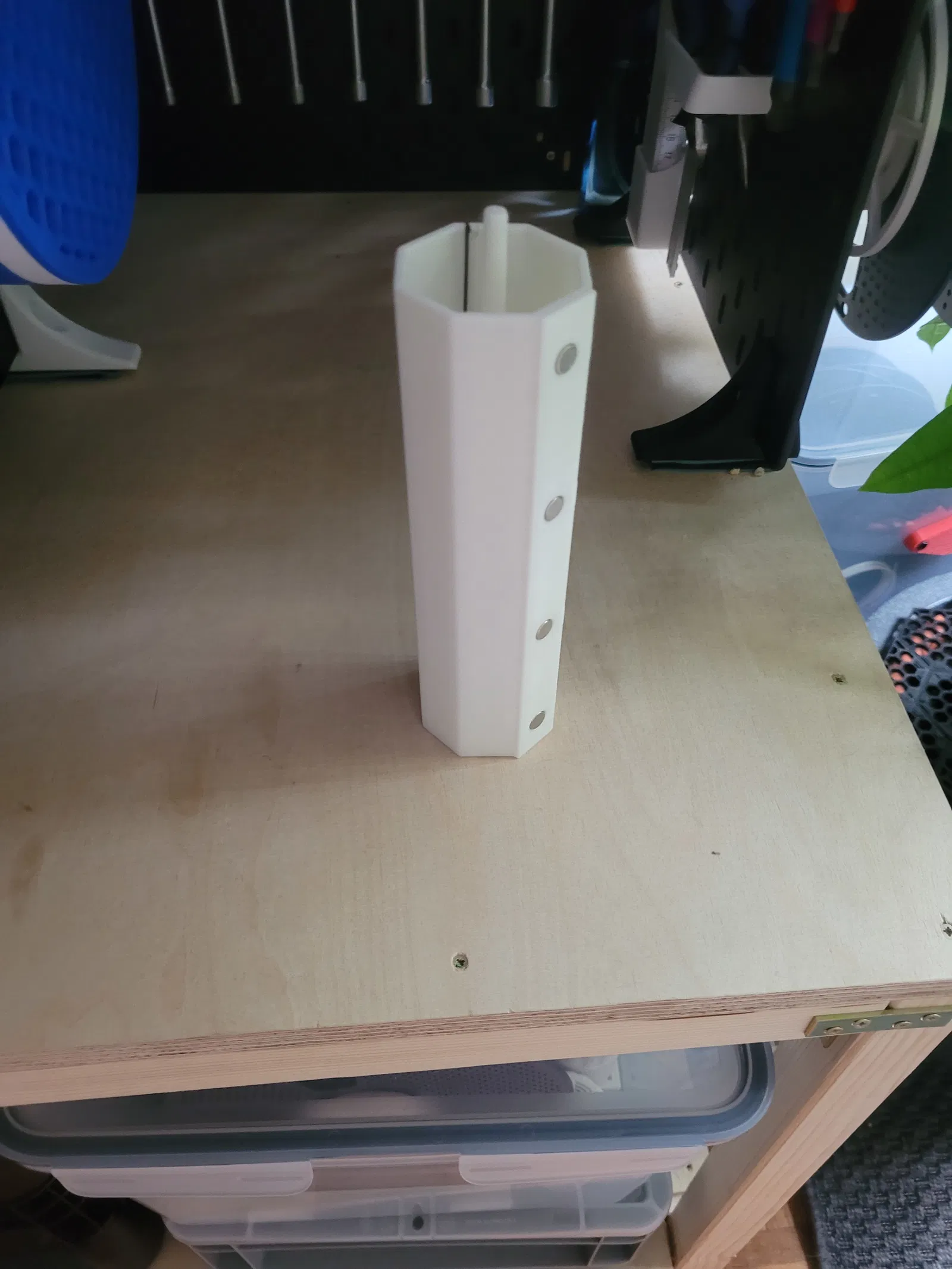 Mình làm cái thùng rác purge line gắn nam châm này để gắn bên trong máy in, có chỗ hứng các đường purge. Nó bám vào vách trong bằng nam châm, nên gắn/tháo chỉ vài giây, không cần dụng cụ.