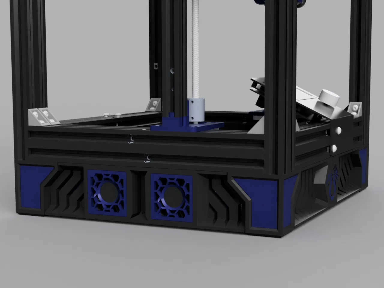 Đây là một bộ vỏ đế (base case) thiên về thẩm mỹ cho Duender, lấy cảm hứng từ Voron. Mỗi bên của phần “side skirt” có 2 vị trí gắn quạt, kèm thêm vài miếng fan spacer tuỳ chọn nếu bạn muốn gắn 2 quạt về một phía. Bên dưới chân có các khoét rãnh để dán lại miếng cao su chân đế zin của Ender 3, nhưng bạn cần cắt đôi các miếng cao su đó. Mình có đính kèm file STEP nếu bạn muốn remix.