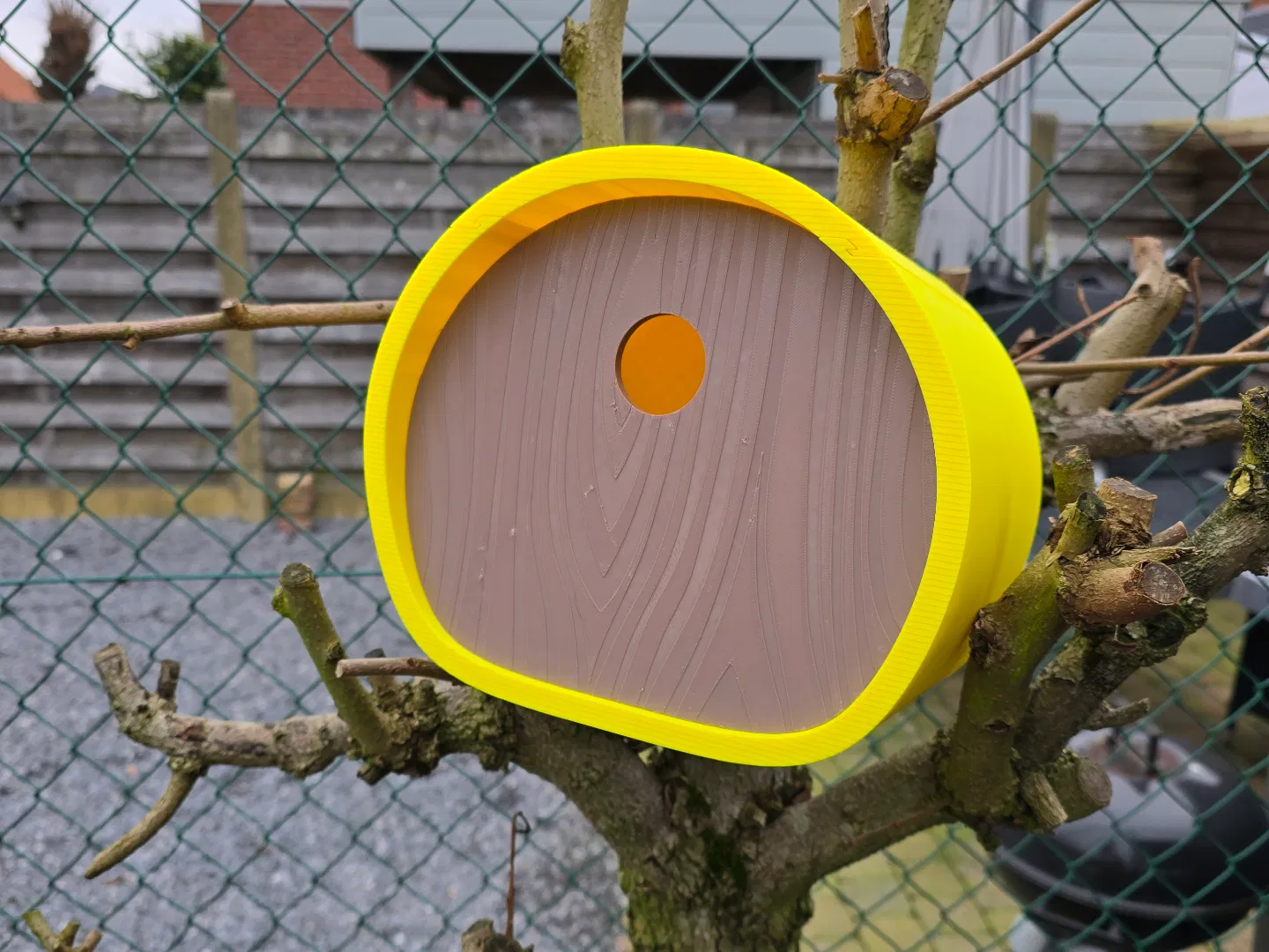 Mẫu Birdhouse oval thiết kế in không cần supports; phần nắp (top) nên dùng brim để hạn chế warping. Có 3 mặt trước với kích thước lỗ khác nhau, dễ tháo vệ sinh hằng năm. Khuyên in PETG để chịu thời tiết.