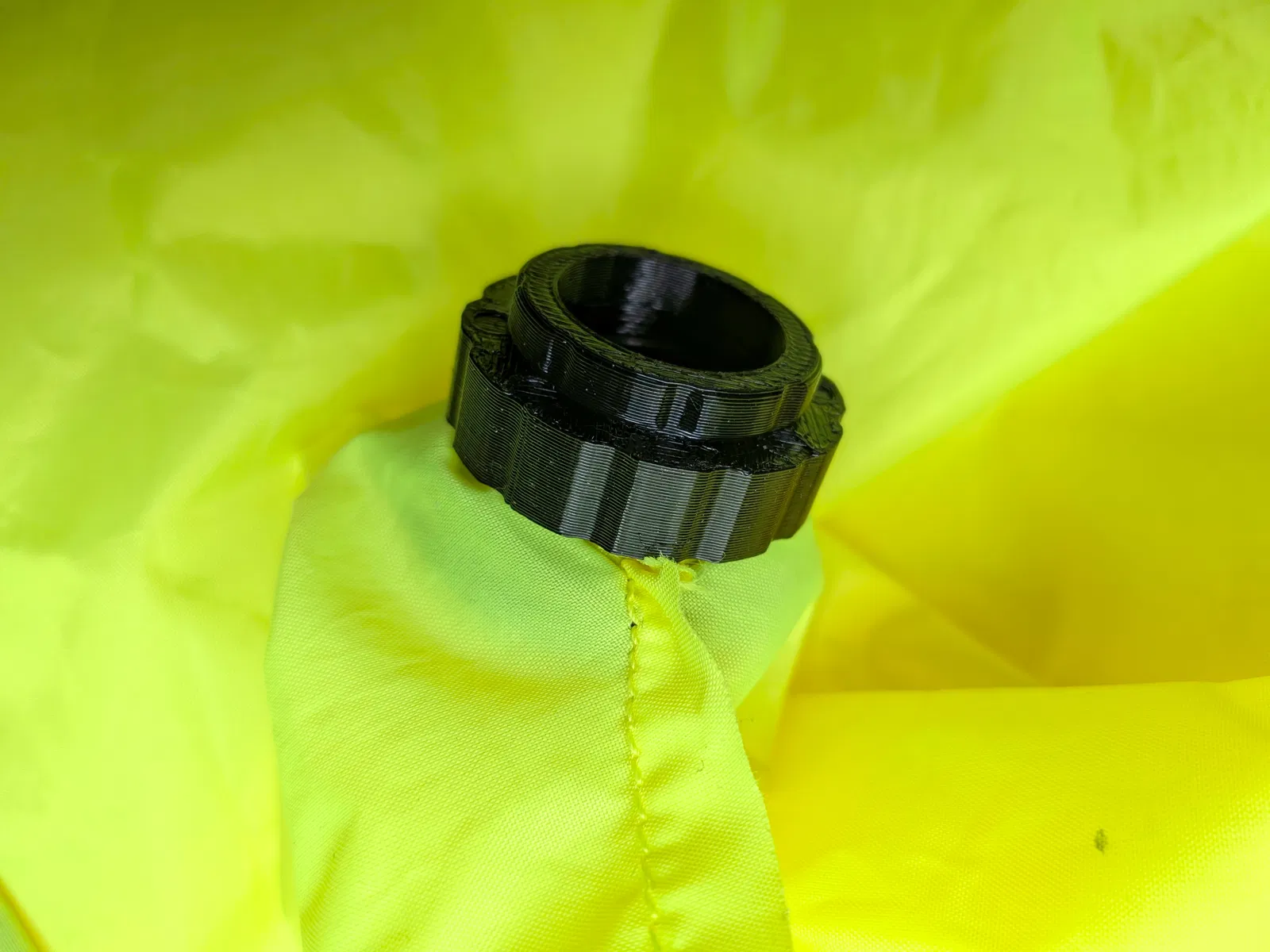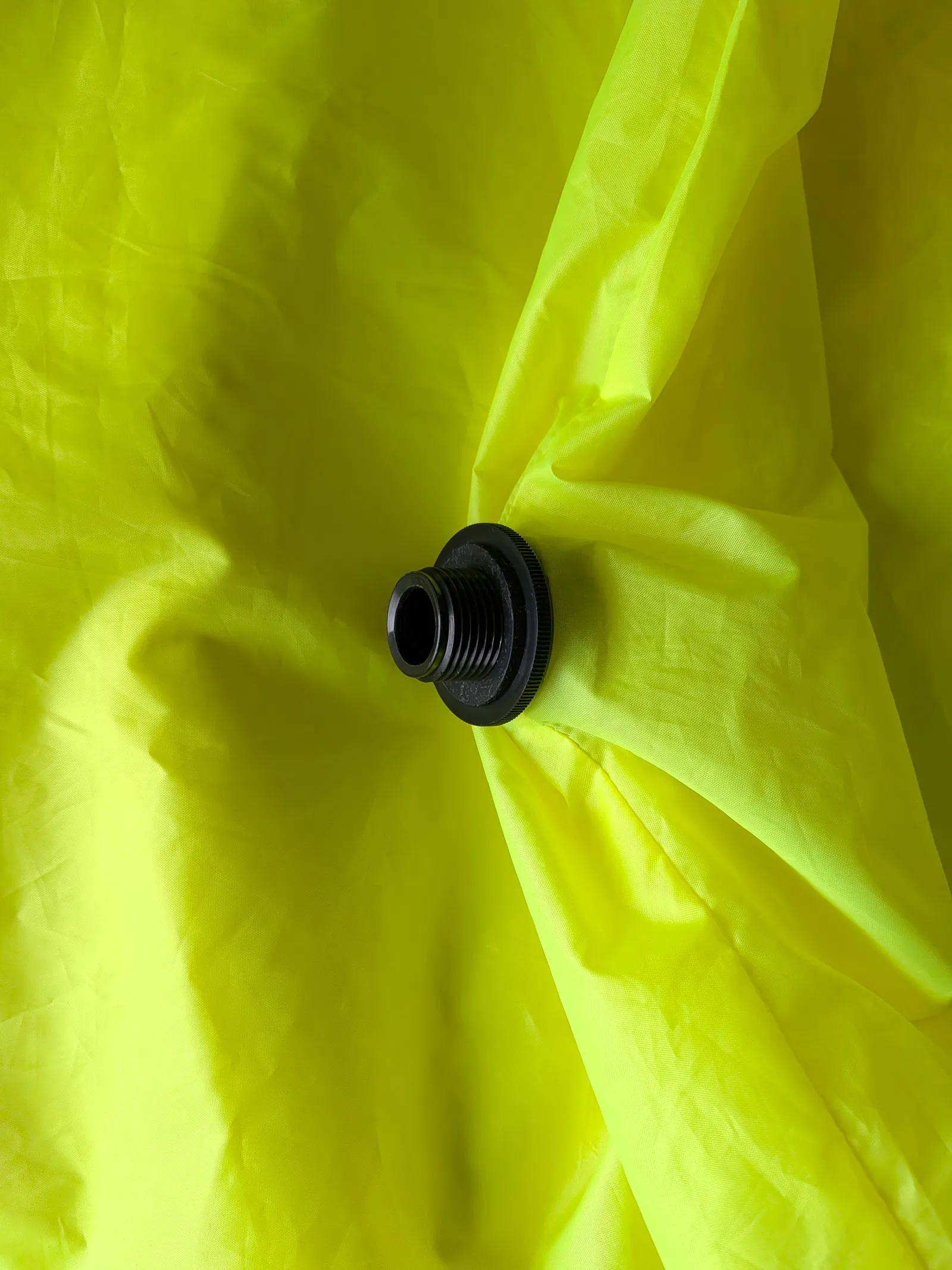 Túi khí Anfibio để bơm packraft, trong trường hợp của mình, chỉ được kéo trùm lên valve adapter ở phía trong (xem hình đầu). Sau khi vặn adapter vào packraft nhiều lần, túi bị tuột khỏi van. Để tránh bị lại, mình thiết kế một con ốc (nut) để giữ túi không bị bật/tuột ra (hình 1 và 3). Nếu sau này cần chỉnh sửa gì thêm, mình sẽ cập nhật thiết kế.