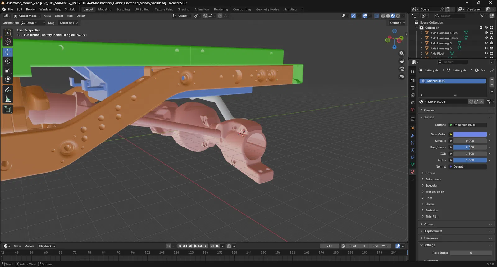 Đã chỉnh sửa để gắn vừa pin cao hơn mà không bị vướng phần dưới của thùng chở hàng. Đồng thời lùi về sau để không đụng vào bộ vi sai (differential) và thanh sau do bản mod “overland” (cho phép dùng tời/winch). Thêm 2 gối/đỡ để đi dây LED và các đường dây dịch vụ ở phía sau xe. Đây là một cách triển khai khác so với bản cũ của mình. https://www.thingiverse.com/thing:7251007