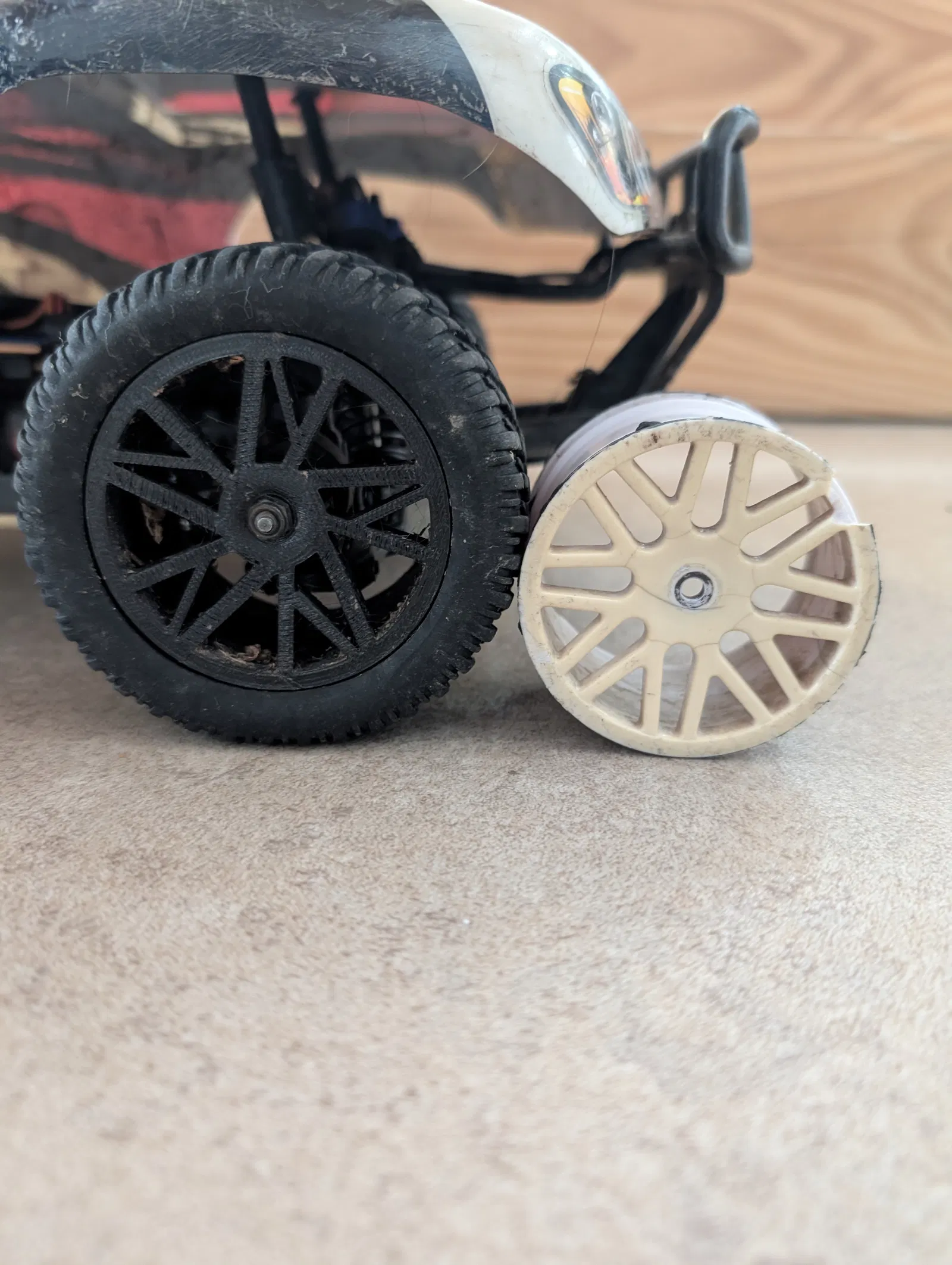 Mẫu này rất cứng. Mình đã dùng trên xe RC chạy được 40 km/h và chưa từng bị gãy, kể cả khi vào cua nhanh, lúc đó có rất nhiều lực dồn qua phần ngàm/mount của bánh.