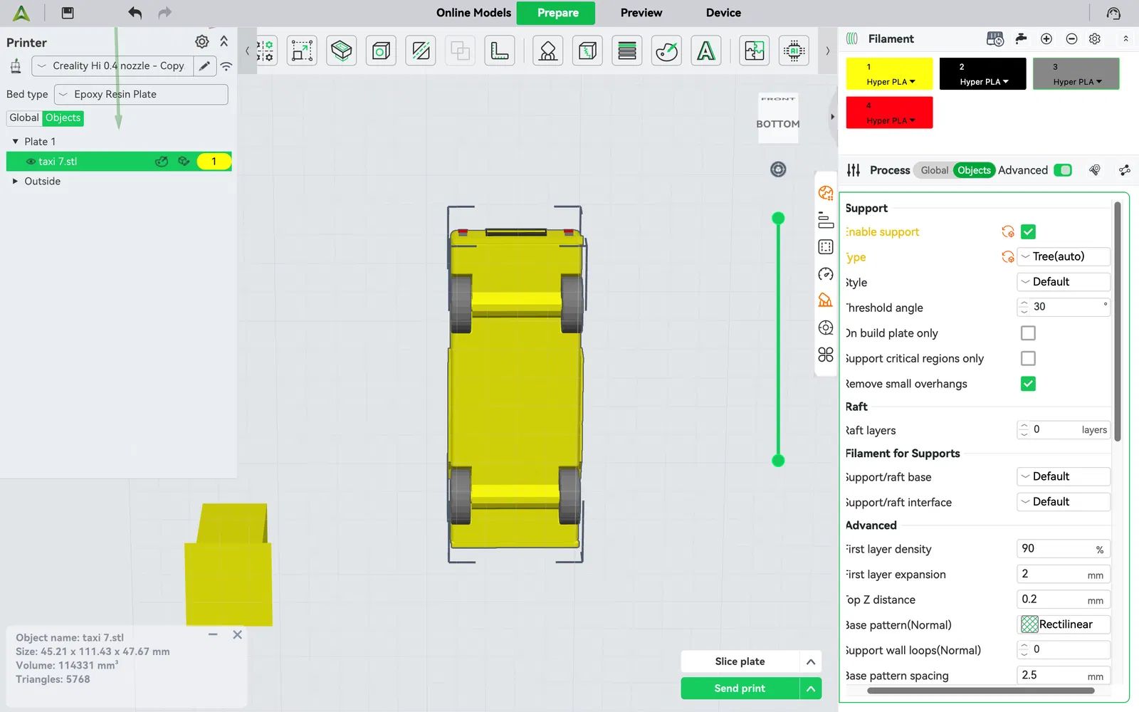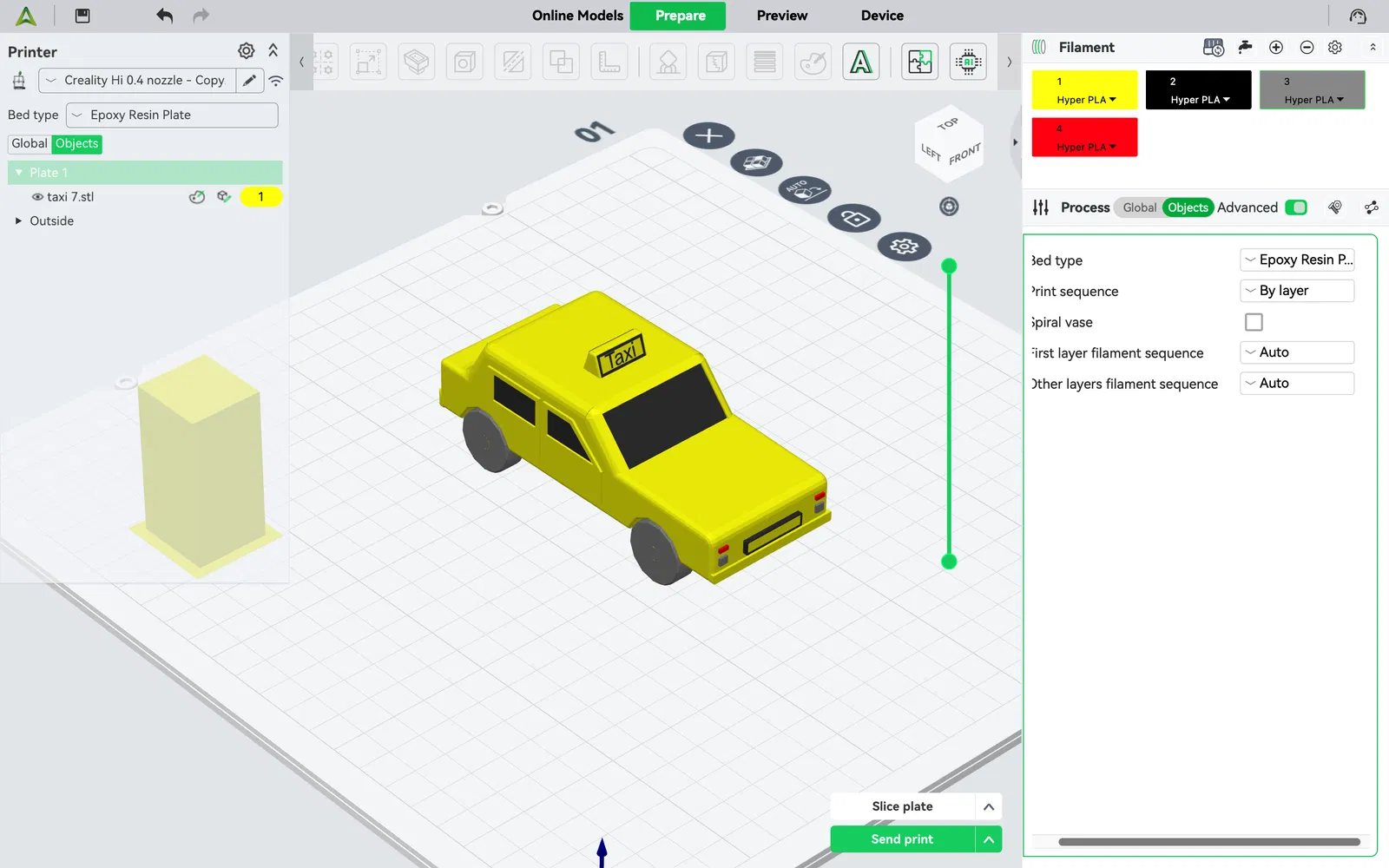 Việc in 3D mô hình xe taxi này cũng khá đơn giản. Bạn có thể chọn in với một màu duy nhất hoặc sử dụng công nghệ in đa sắc để chiếc xe taxi thêm phần sống động và thu hút. Hãy thử nghiệm với các loại nhựa PLA hoặc ABS để có được sản phẩm bền đẹp nhất. Kích thước mô hình có thể tùy chỉnh theo ý muốn, phù hợp với không gian trưng bày hoặc mục đích sử dụng của bạn.