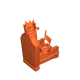 Ngay trung tâm là một bệ đá nhô cao, phía trên đặt một ngai vàng mini được chế tác cực kỳ tinh xảo. Chiếc ngai kết hợp kiểu chạm khắc gỗ Gothic với các chi tiết kiến trúc kiểu lâu đài: hai tháp canh nhỏ ở hai bên, cờ rủ màu đỏ thẫm có huy hiệu sư tử, và một vương miện uy nghi gắn trên đỉnh. Phần nệm nhung đỏ tạo tương phản đẹp mắt với lớp gỗ tông vàng được trang trí cầu kỳ.