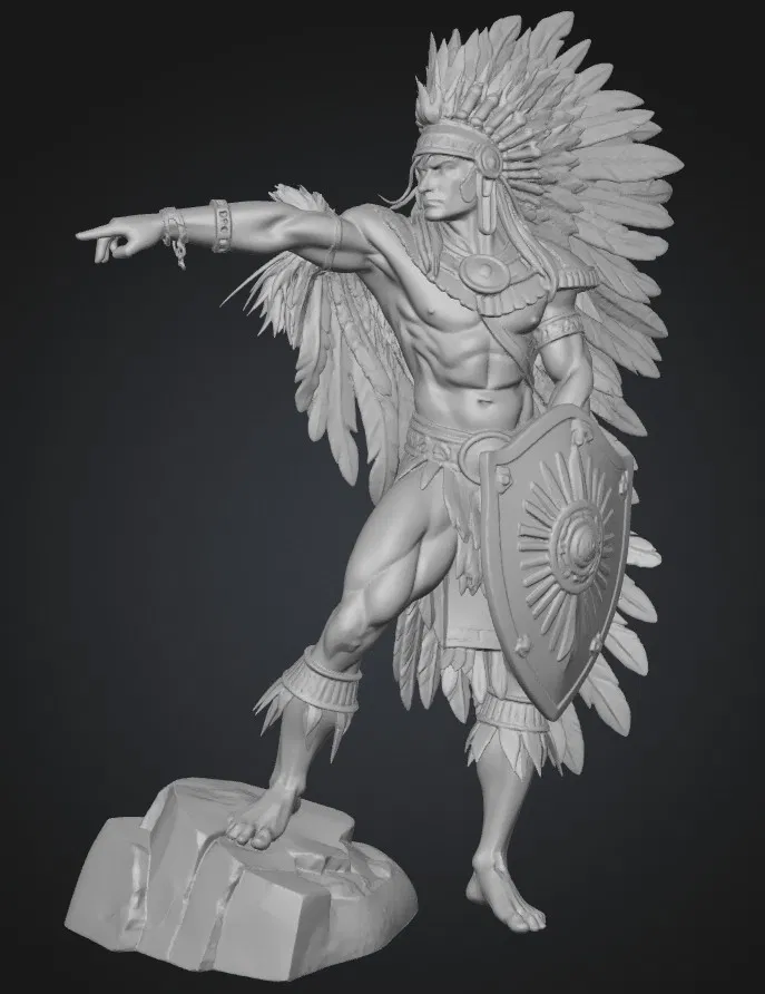 Mô hình "Chiến Binh Lông Vũ" (Feathered Sky Warrior) tái hiện hình ảnh một chiến binh mạnh mẽ, oai phong, mang đậm nét văn hóa của các tộc người bản địa châu Mỹ. Với tư thế hiên ngang, một tay chỉ về phía trước đầy khí thế, tay kia ôm cây khiên được chạm khắc tinh xảo, mô hình này không chỉ là một vật phẩm trang trí độc đáo mà còn là biểu tượng cho tinh thần kiên cường, ý chí bất khuất và khát vọng chinh phục.