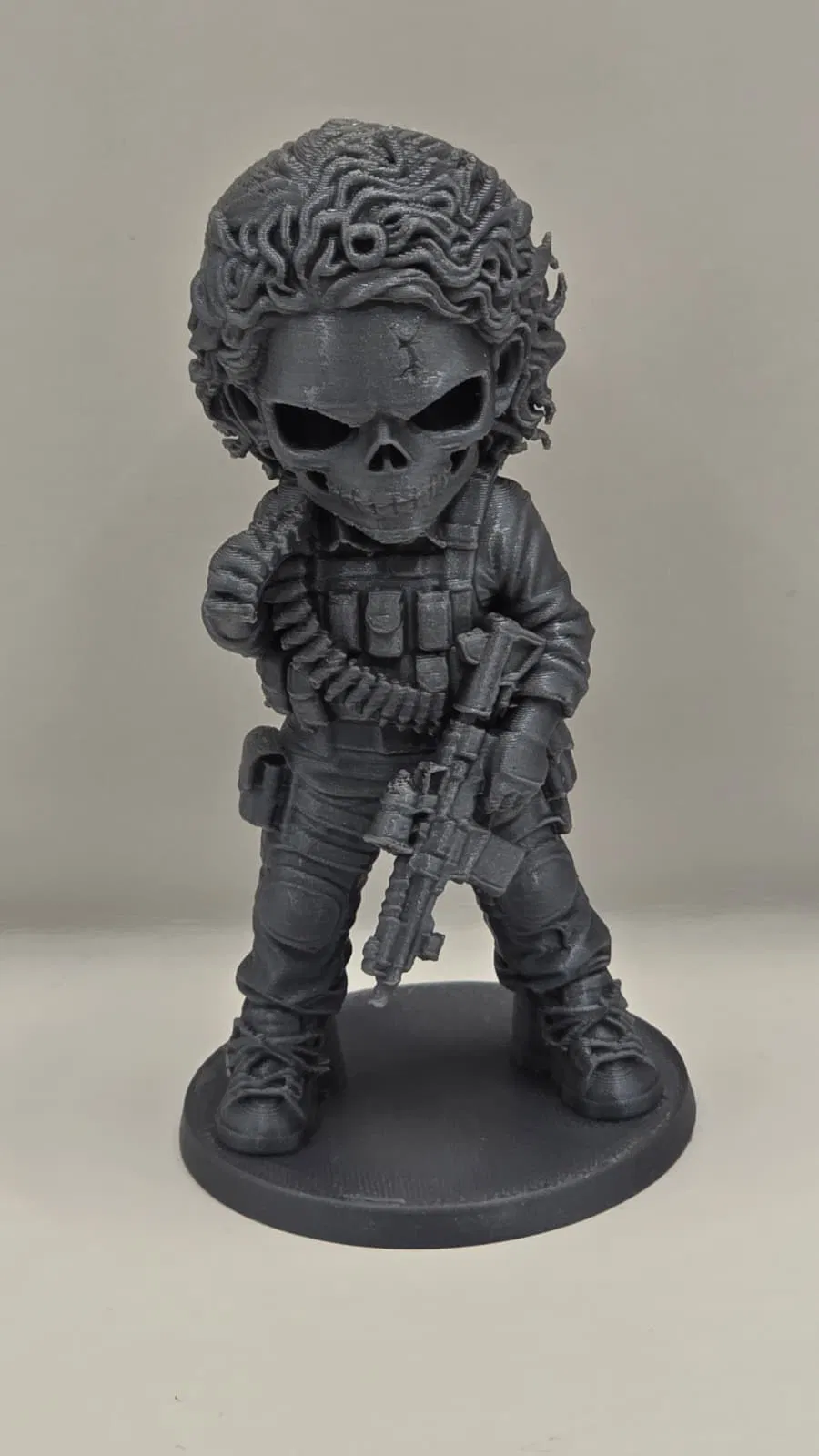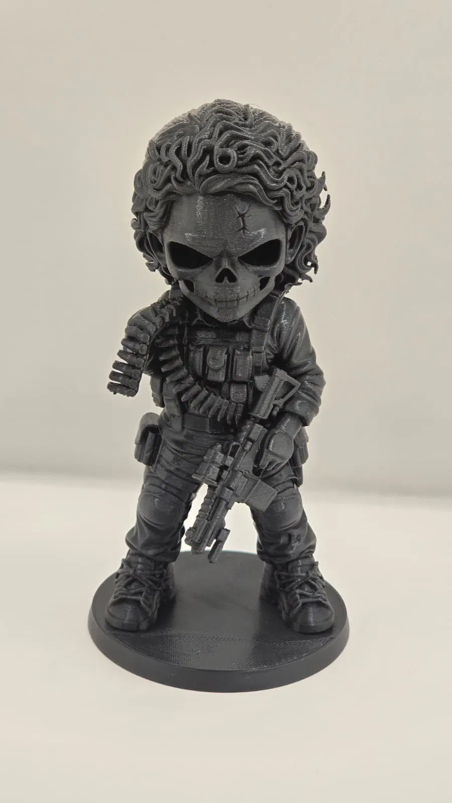 Tượng đầu lâu Stranger Things #9 – Nancy trong series Skull Figurines. Có 2 bản in: Texture Silver 10 cm và Black 15 cm. Gợi ý settings tiết kiệm filament: layer 0.16 mm, infill Gyroid, Tree Supports.