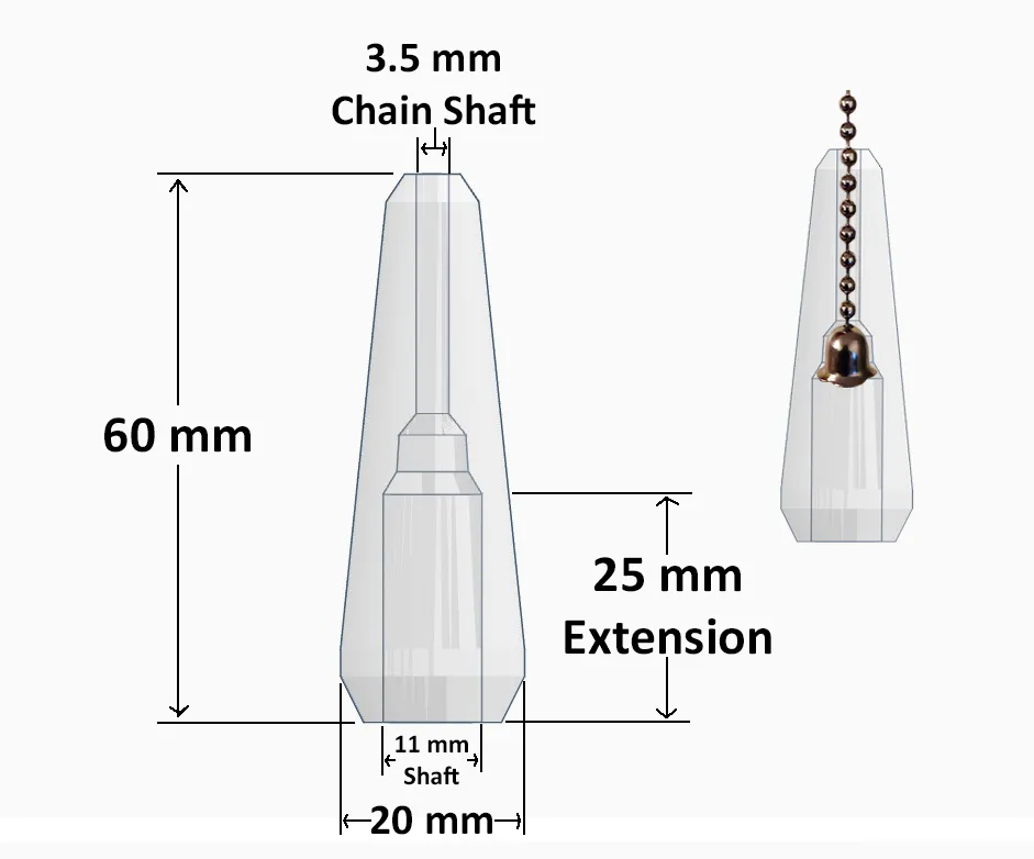 Đây là một dây kéo hoặc fob cho các thiết bị chiếu sáng cửa hàng có dây kéo truyền thống. Nó lớn hơn hầu hết các dây kéo, vì vậy dễ dàng hơn để cầm khi đeo găng tay. Nó sẽ phù hợp với hầu hết các dây kéo thiết bị chiếu sáng có dây kéo hiện có. Dây kéo phải có một loại chuông, bóng hoặc đầu nối lớn hơn ở cuối, hoạt động như một điểm dừng để giữ dây kéo ở vị trí. Dây kéo này sẽ kéo dài chiều dài của một dây kéo hiện có khoảng ~25 mm. Xem sơ đồ đính kèm để biết kích thước; sơ đồ này cho thấy loại dây kéo và chuông cuối có trên đèn của tôi, và là cơ sở cho thiết kế của tôi về thiết kế dây kéo này.