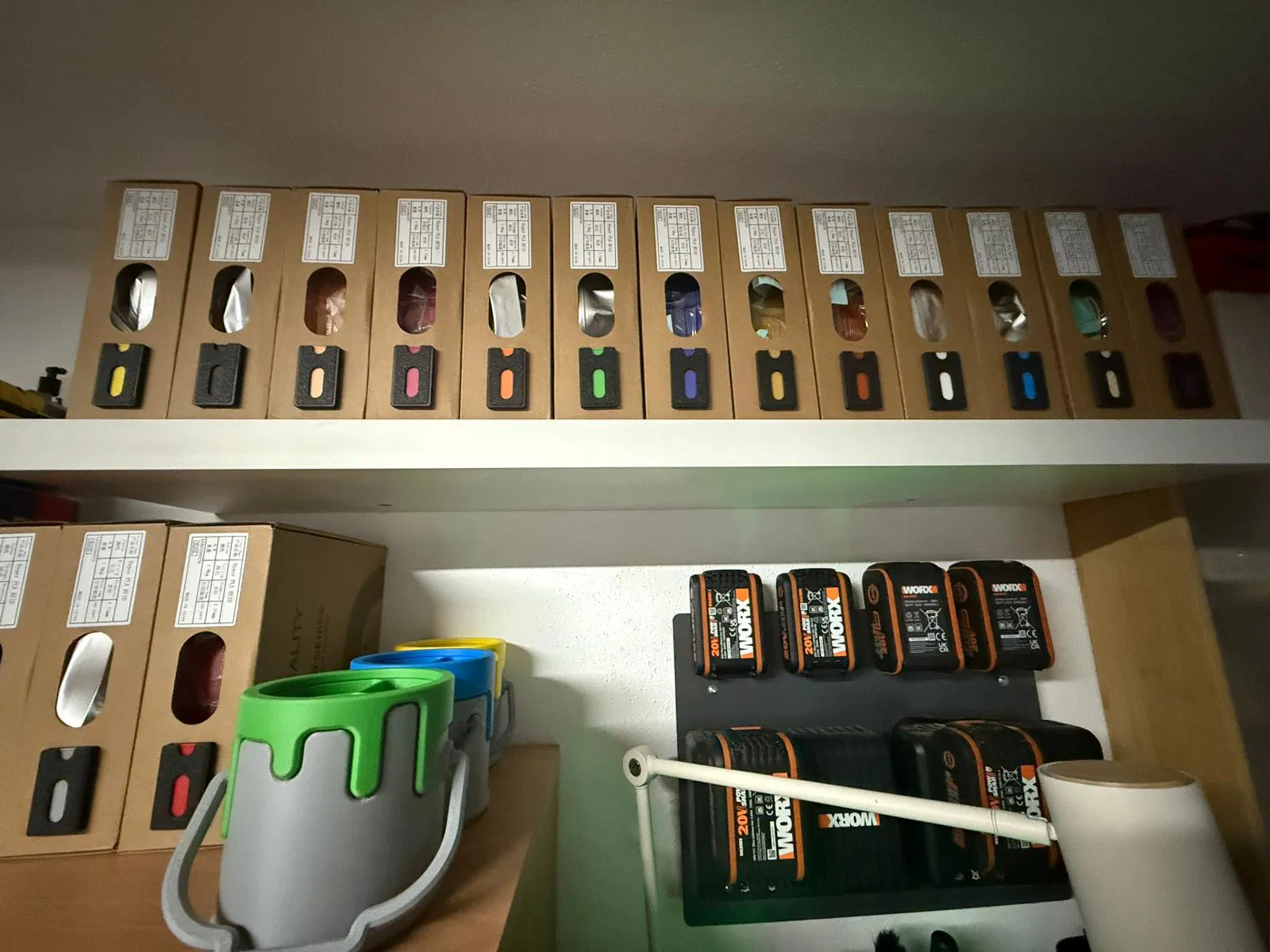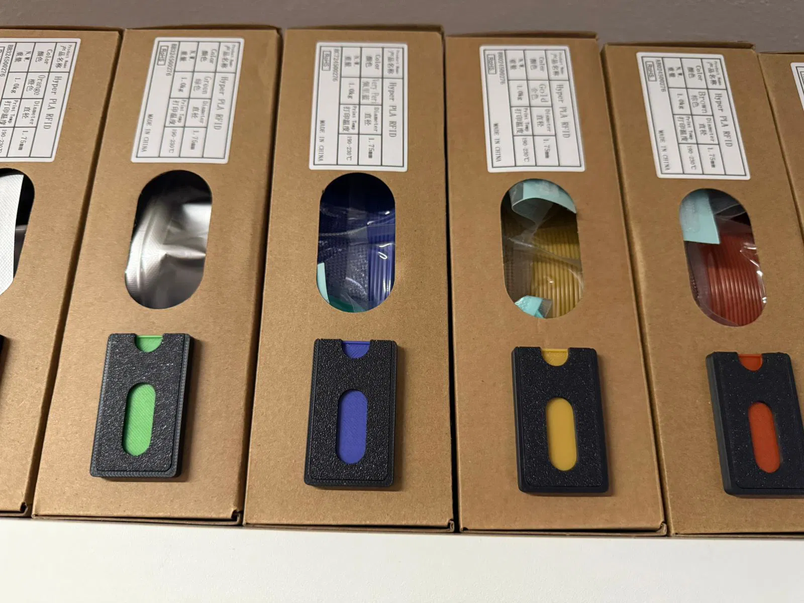 Tiện nói luôn, mình chỉ dùng Hyper PLA có chip RFID cho K2 plus và K2 combo, dùng TPU cho ECC, còn tất cả filament khác thì dành cho H2D. Nên mình dùng màu khác nhau cho swatch holder để nhận biết loại filament nằm trong hộp.