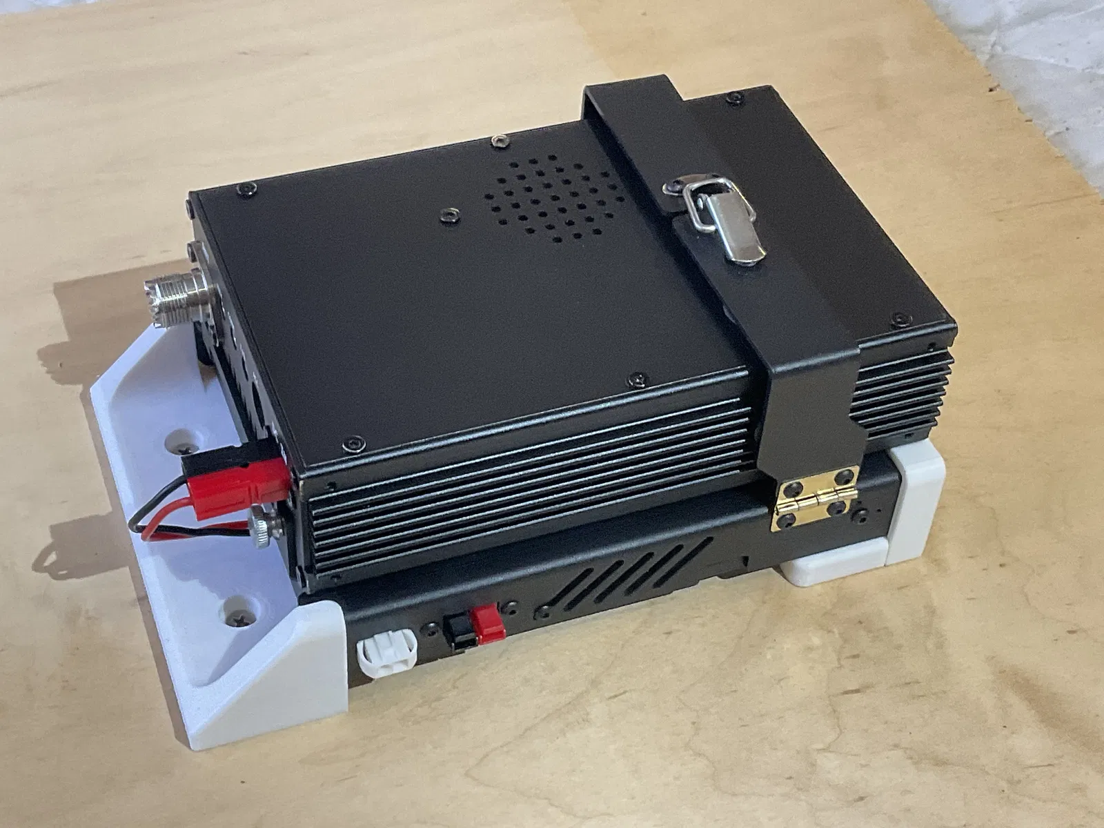 Giá treo tường dạng quick release để đưa máy thu phát Xiegu G90 lên tường, giải phóng mặt bàn và vẫn tháo ra nhanh để mang đi POTA. Kèm jig canh bracket và riser 10 mm tuỳ chọn tăng airflow.