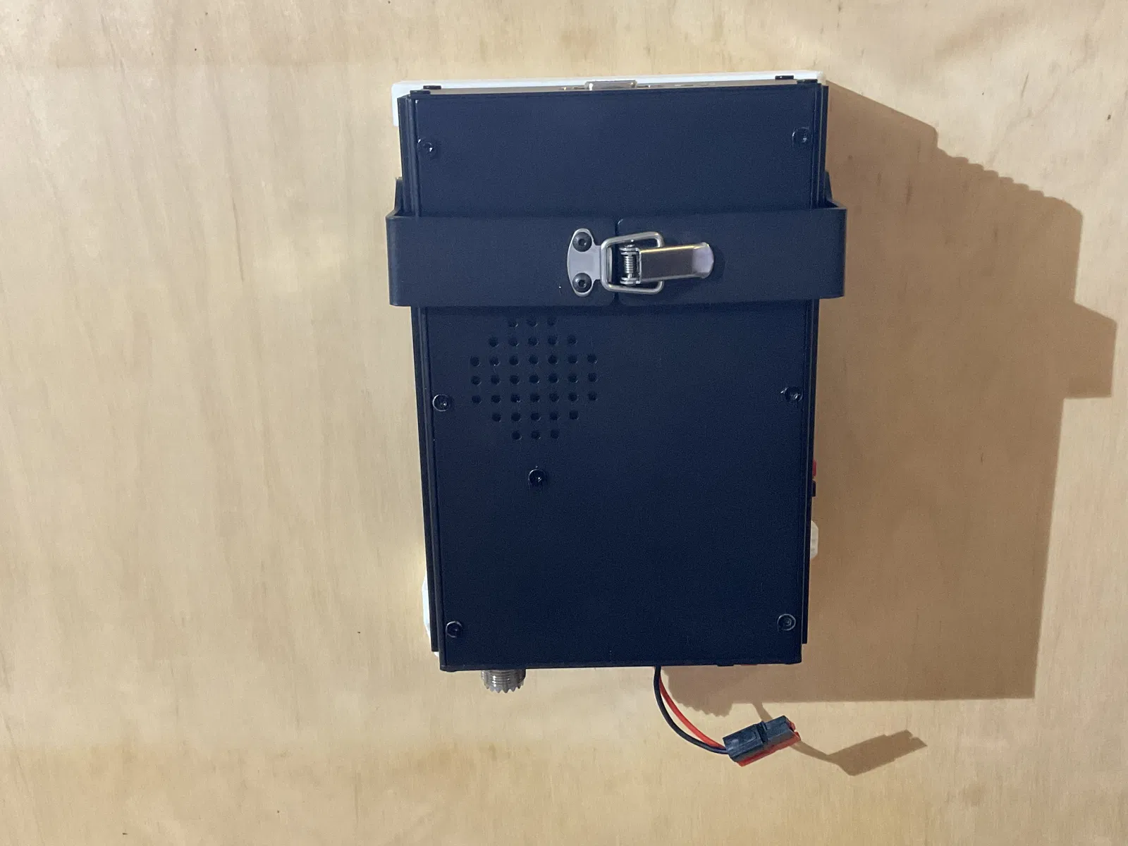 Do bàn làm việc không còn nhiều chỗ, mình quyết định treo bộ HF radio lên tường theo phương thẳng đứng, ngay dưới mặt bàn nơi mình vận hành. Yêu cầu thiết kế của mình còn có thêm là máy phải dễ tháo ra để mang theo khi đi POTA. Đây là phương án mình làm ra.