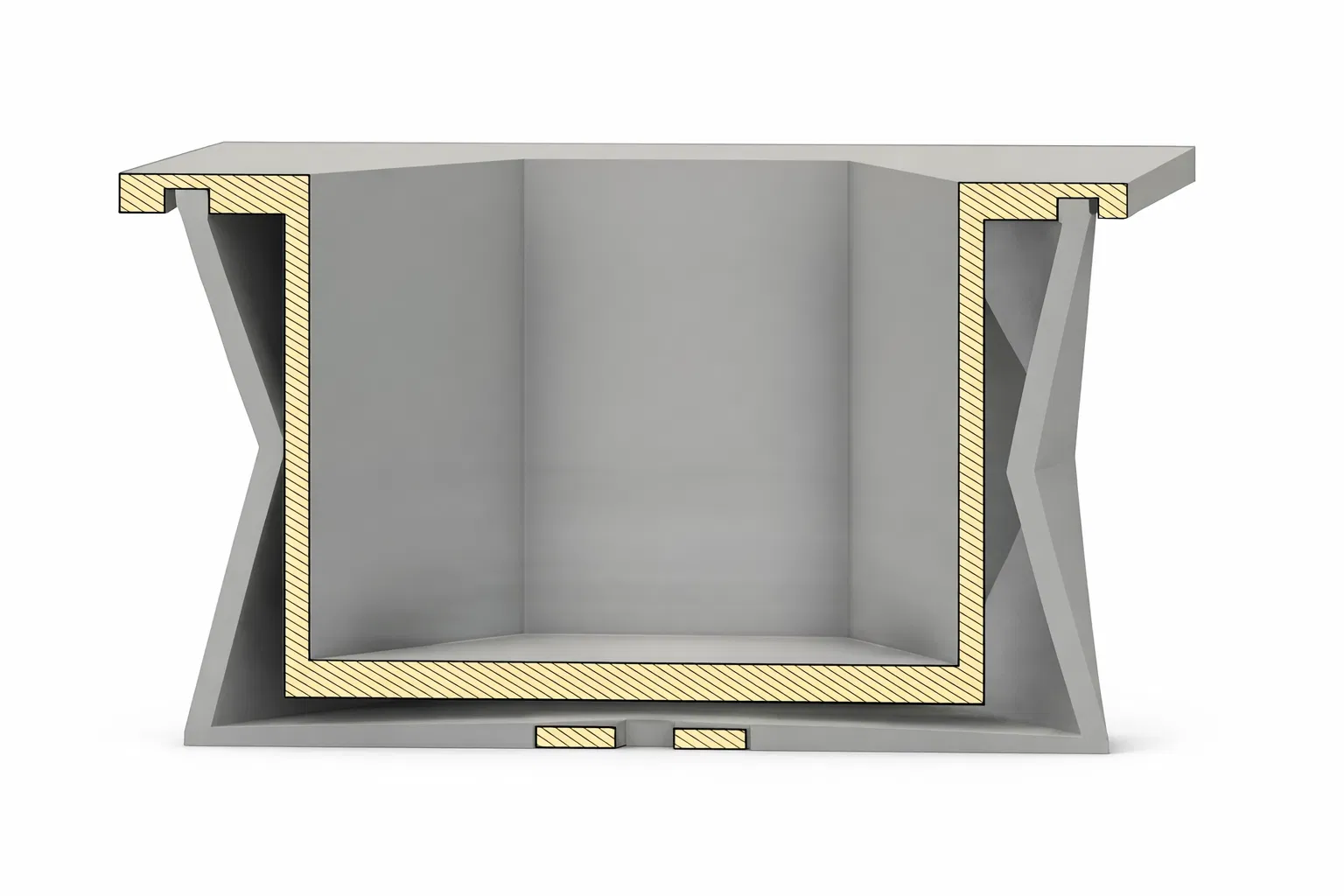 Khuôn gồm hai nửa đối xứng (mirror) ghép lại tạo thành dáng lục giác sắc nét, các mặt bên kiểu faceted.