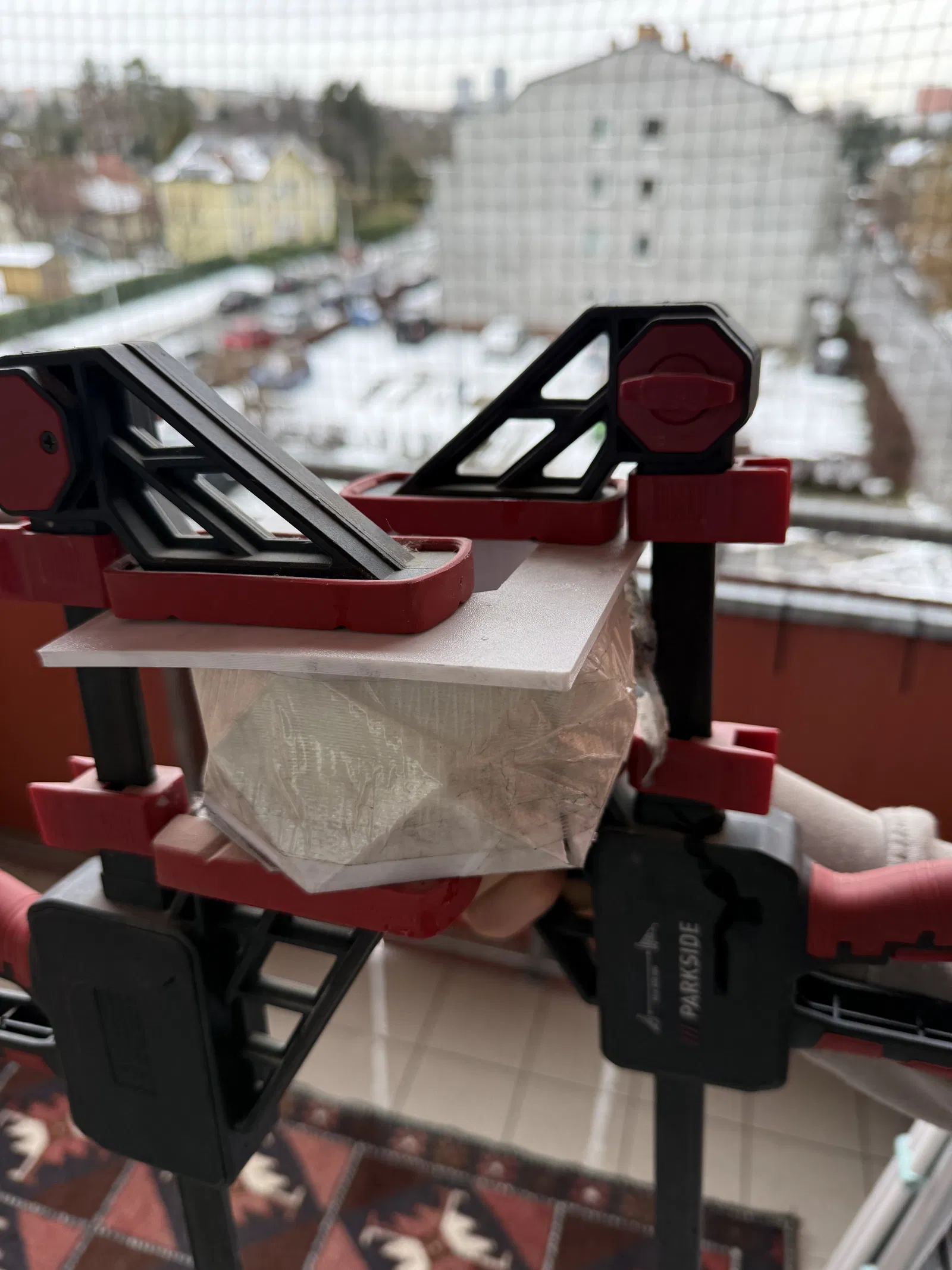 Khuôn đối xứng nên khi ép có thể canh thẳng bằng băng keo hoặc kẹp (clamps).